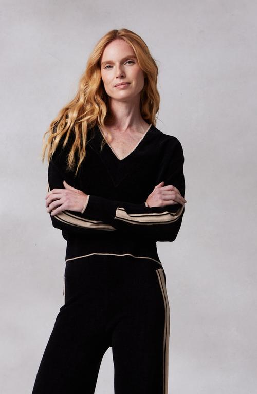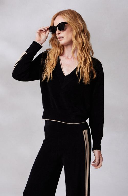 Transitional, versatile, and always elegant, our V Neck Track Sweater is about to become a closet staple. Elegant plunging v-neckline Can be dressed up or styled casually Perfect for travel ensembles