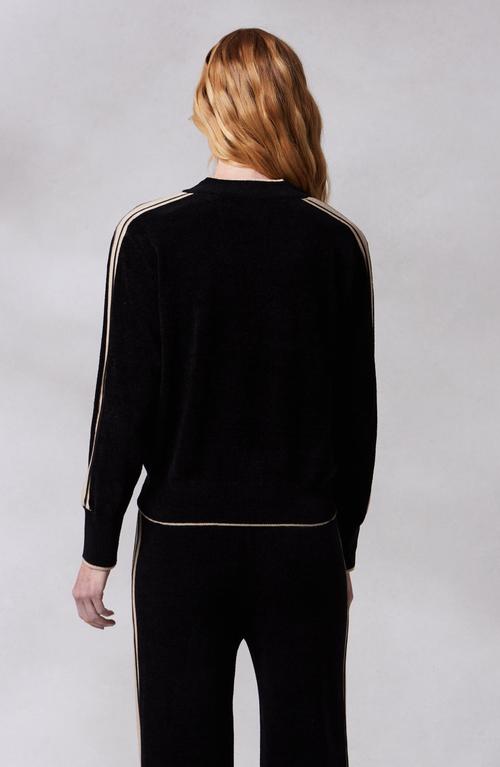Kashwere Apparel Kash-chic Women's V Neck Track Sweater in Black/sand Stripe at Nordstrom, Size X-Small
