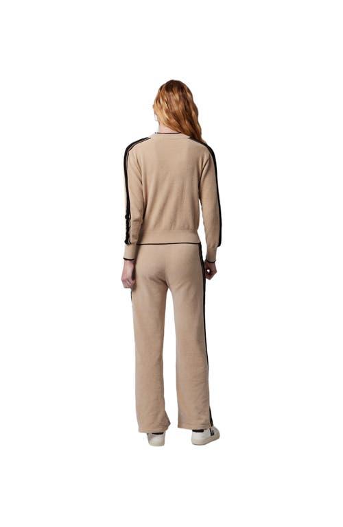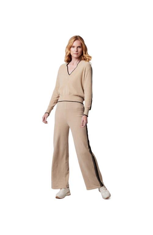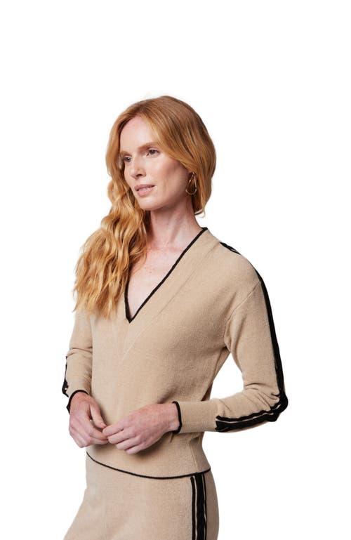 Kashwere Apparel Kash-chic Women's V Neck Track Sweater in Sand/black Stripe at Nordstrom, Size X-Small