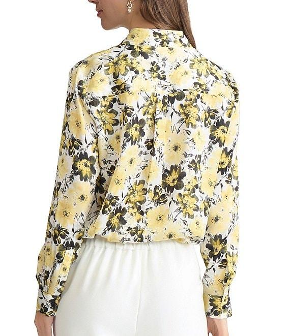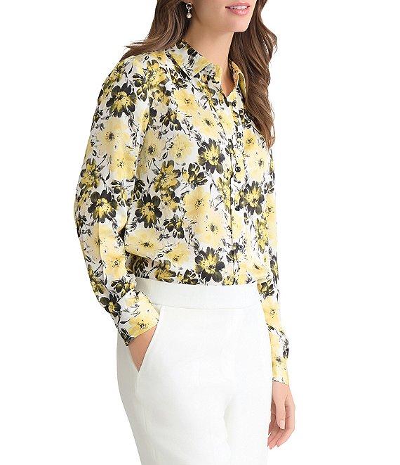 Kasper Floral Satin Long Sleeve Button Down Blouse
