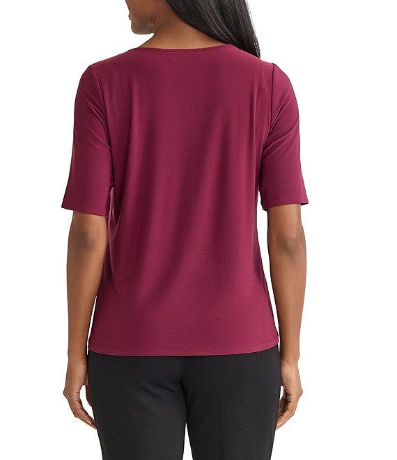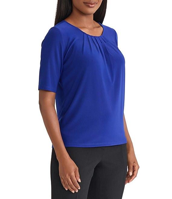 Kasper Jersey Knit Elbow Sleeve Box Pleat Crew Neck Top