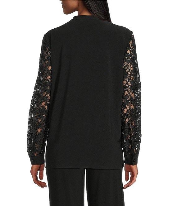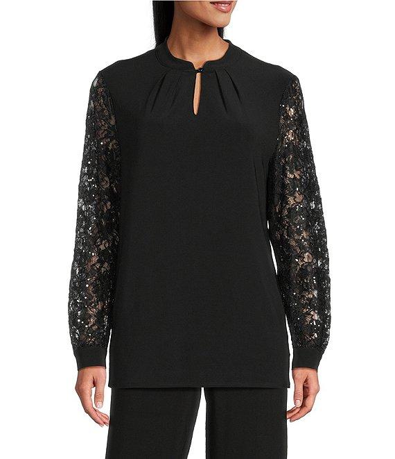 From Kasper, this blouse features: Mix media fabrication Blouse Keyhole neckline Long sleeves Lace sleeves Pullover closure Approx. 26" length Polyester/Elastane/Nylon/Viscose Hand wash Imported.