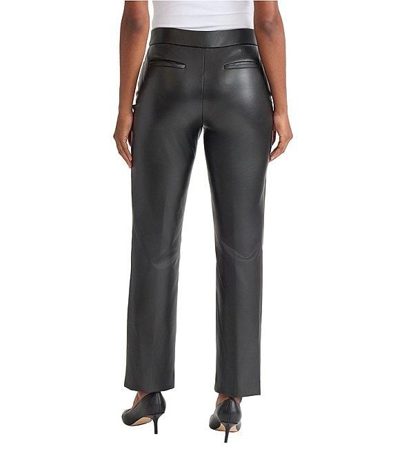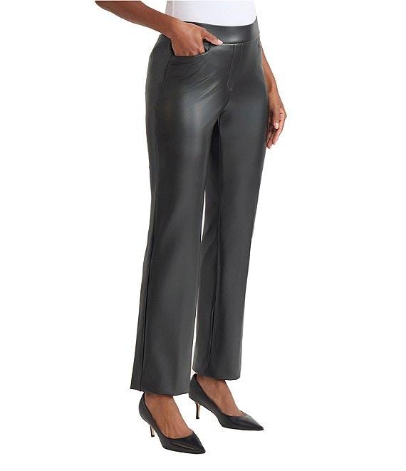From Kasper Petite, these pants feature: Coated stretch fabrication Wide leg Pull-on construction L-pocket Back welt pockets Approx. 29" length Polyurethane Machine wash Imported.