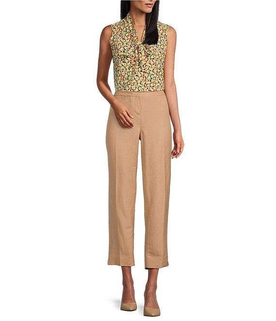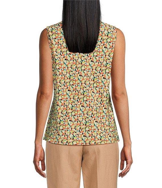 Kasper Petite Size Abstract Print CDC Tie Neck Sleeveless Fitted Blouse