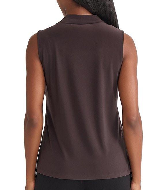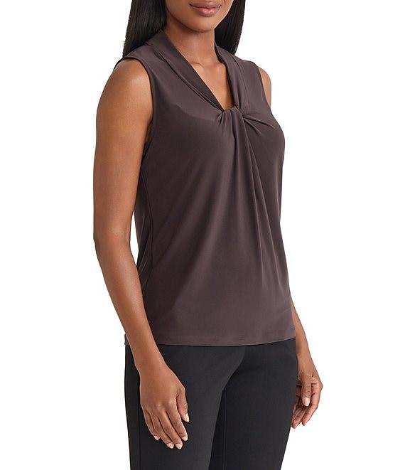 From Kasper Petite, this blouse features: Solid jersey knit fabrication Blouse silhouette Knot front neckline Sleeveless Pullover closure Approx. 23" length Polyester/elastane Dry Clean Imported.