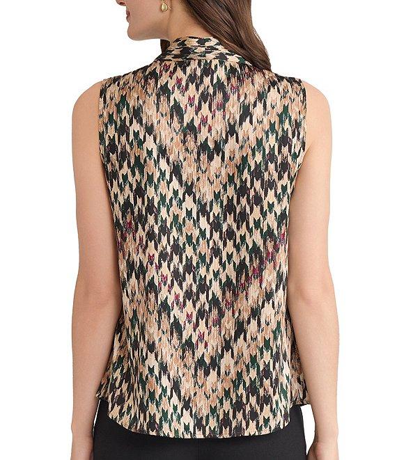 Kasper Printed Pleat V-Neck Sleeveless Top