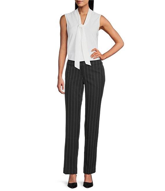 Kasper Pinstripe Mid Rise Straight Leg Pants
