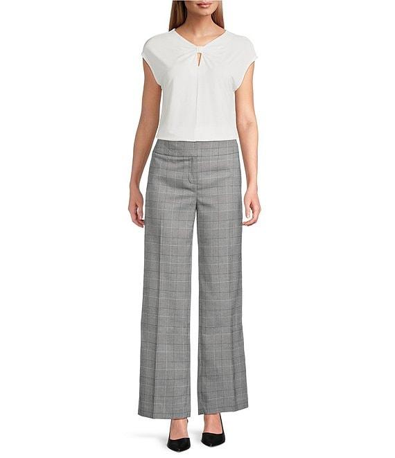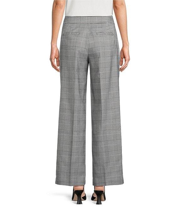 Kasper Plaid Flat Front Mid Rise Wide Leg Pants