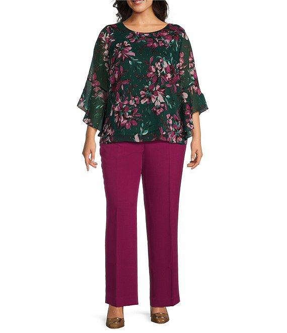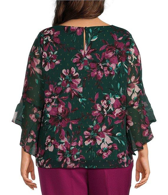 Kasper Plus Size Floral 3/4 Ruffle Sleeve Blouse