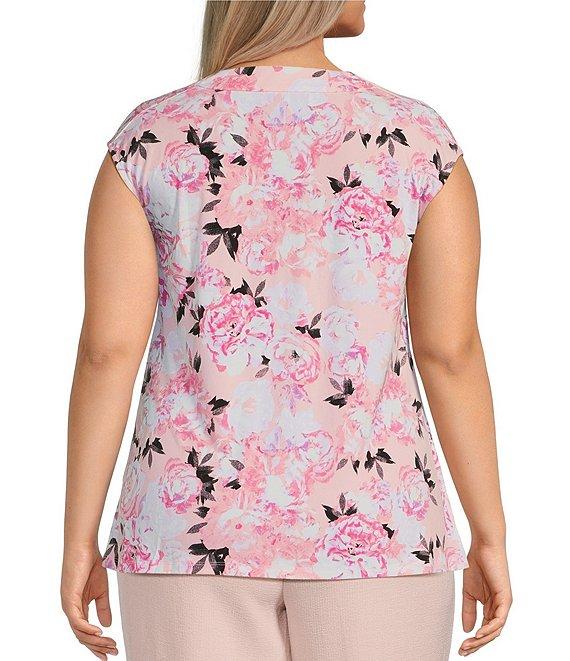 Kasper Plus Size Floral Drapey Knit Cowl Neck Sleeveless Blouse