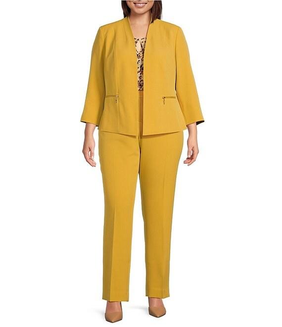 Kasper Plus Size Stretch Crepe Zip Pockets Coordinating Open Front Cardigan Jacket