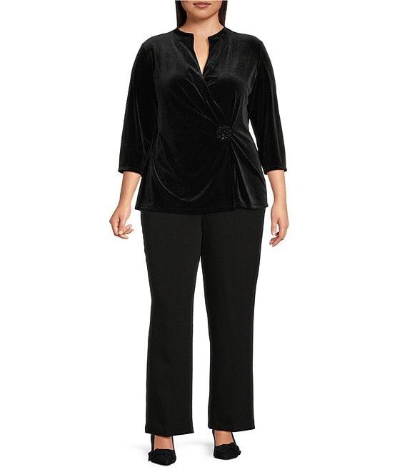 Kasper Plus Size Velvet Wrap V-Neck 3/4 Sleeve Embellished Top