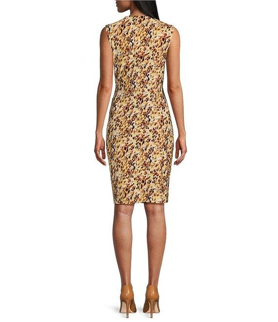 Kasper Printed Surplice V Neckline Sleeveless Faux Wrap Dress