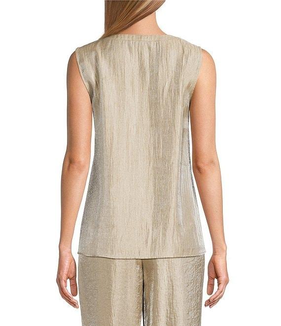 Kasper Shimmer Twill Scoop Neck Sleeveless Top