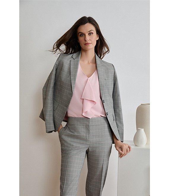 From Kasper, this top features: Crepe to sheen fabrication Blouse V neckline Sleeveless Cascading ruffle center front Pull over construction Approx. 24" length Polyester Machine wash cold Imported.