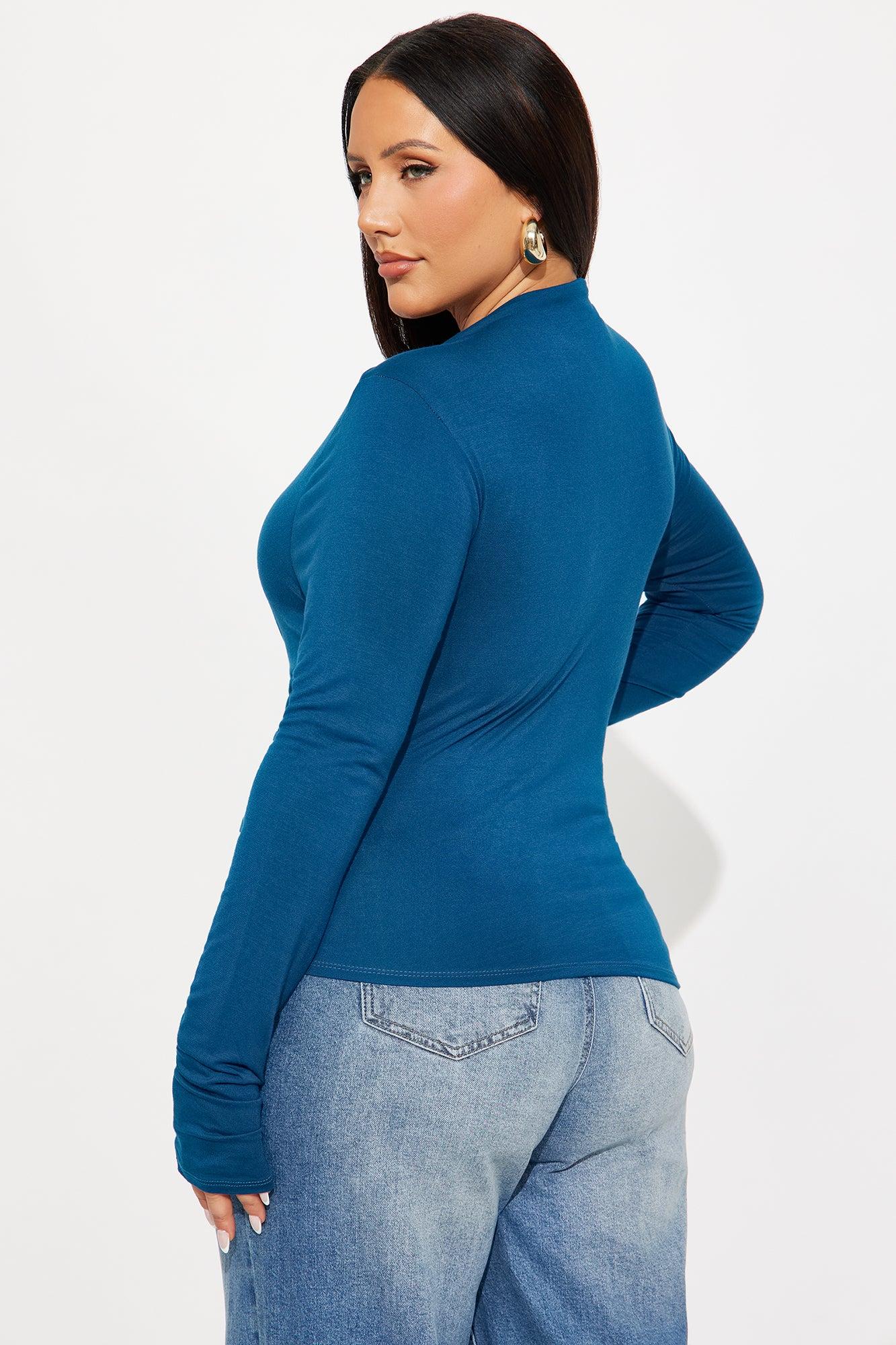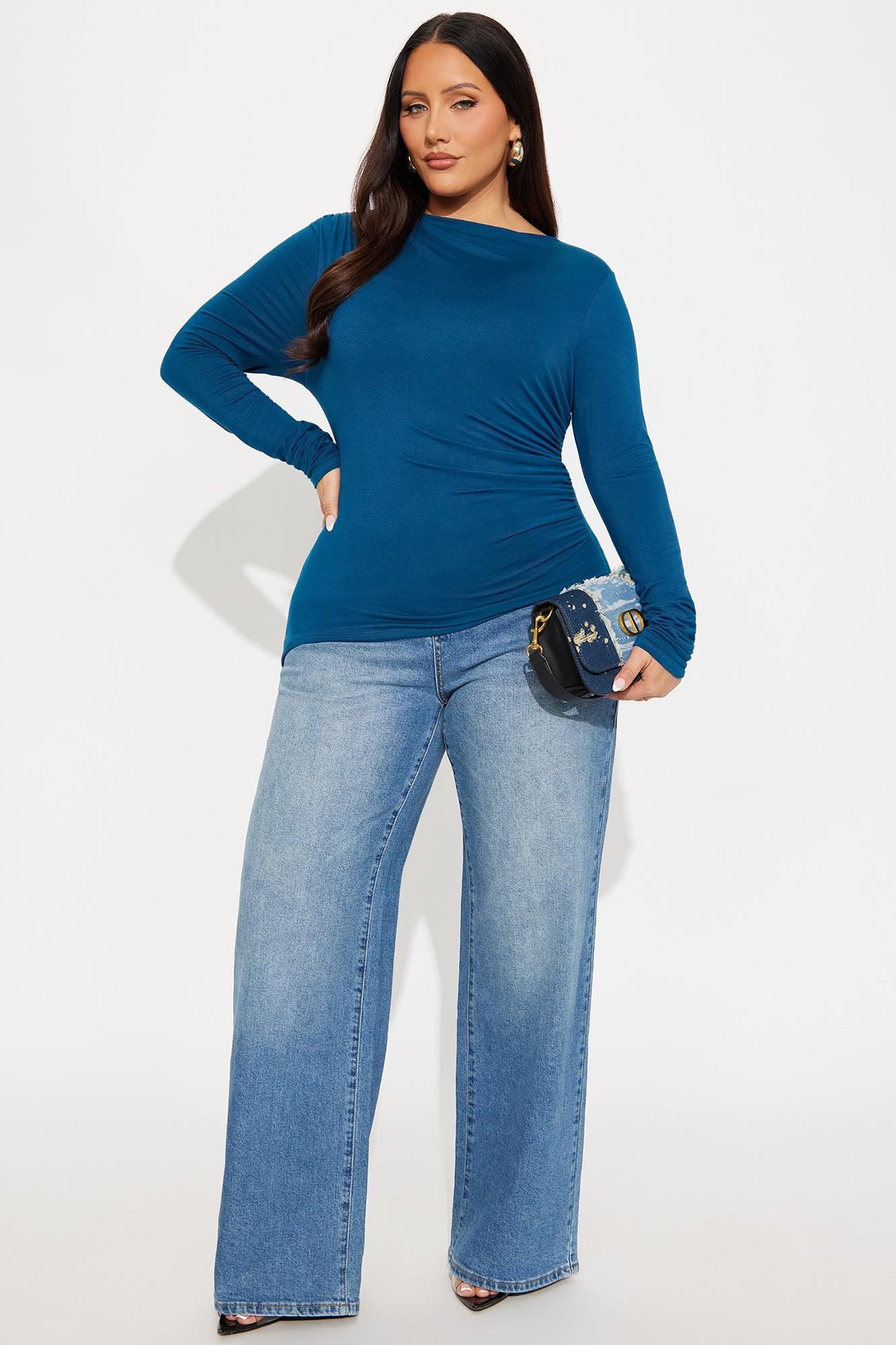 Kass Asymmetrical Long Sleeve Ruched Top - Blue Female