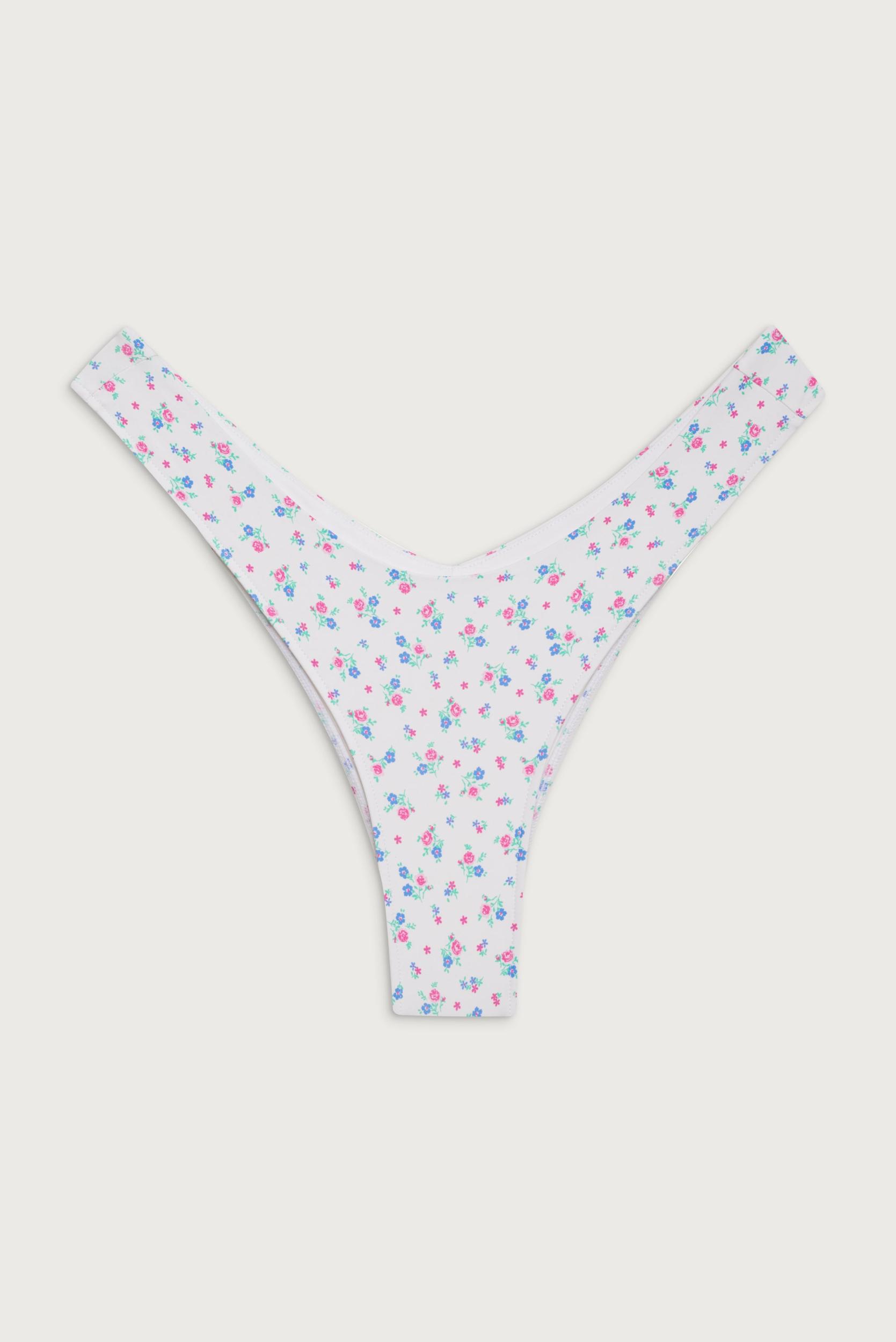 A flirty silhouette with cheeky coverage and our newest floral Sweet Meadow print. The Katarina bikini bottom is designed to boost the booty and banish tan lines. This high leg bikini bottom will be your new best friend. Complete the set with the matching Meredith top. Fabric 80% Nylon + 20% Spandex Flat Swim Cheeky Coverage Model Size & Fit This style runs true to size Ava is wearing a size Small Height 5' 5” (166.5cm) Bust 30.5” (77cm), Waist 23.5" (60cm), Hips 33" (84cm)