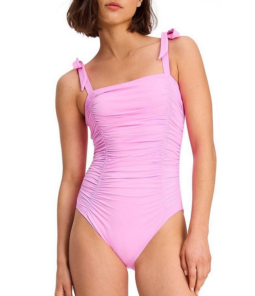 kate spade new york Side Shirred Over the Shoulder Bow Tie One Piece Swimsuit