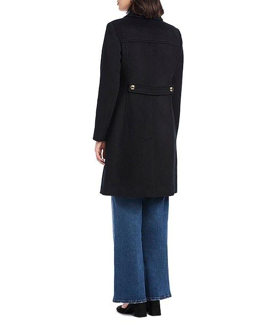 From kate spade new york, this coat features: Wool blend fabrication Single breasted silhouette Point collar neckline Long sleeves Front welt pockets Round scallop cut at back collar Metal dome buttons Round front yoke detail Belt tabs A-line fit Fully lined Straight hemline Button front closure Approx. 38" length Wool/cashmere; lining: polyester Dry clean Imported.