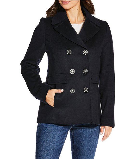 Womens Double-Breasted Wool-Blend Peacoat