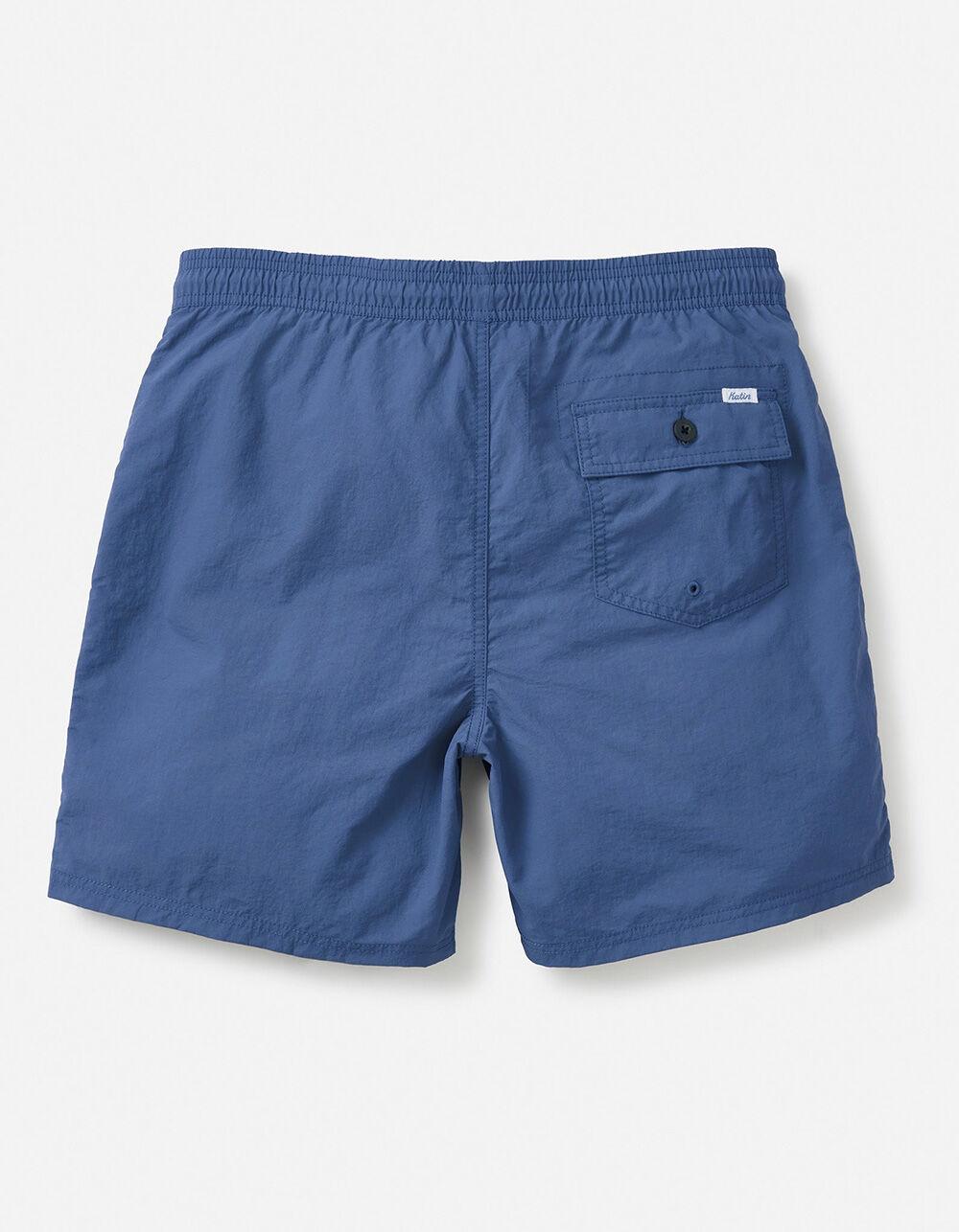 Katin Poolside Volley Shorts. The Poolside Volley remains a Katin fan favorite for its comfort and versatility. Made from Katin's classic nylon, featuring front slash pockets, an elastic waist, mesh brief lining and an interior stash pocket for the beach and beyond. Clean-finished interior seams. Inner stash pocket. Back patch pocket. Elastic waistband with external drawcord. 17" outseam. 100% Nylon. Machine wash. Imported.