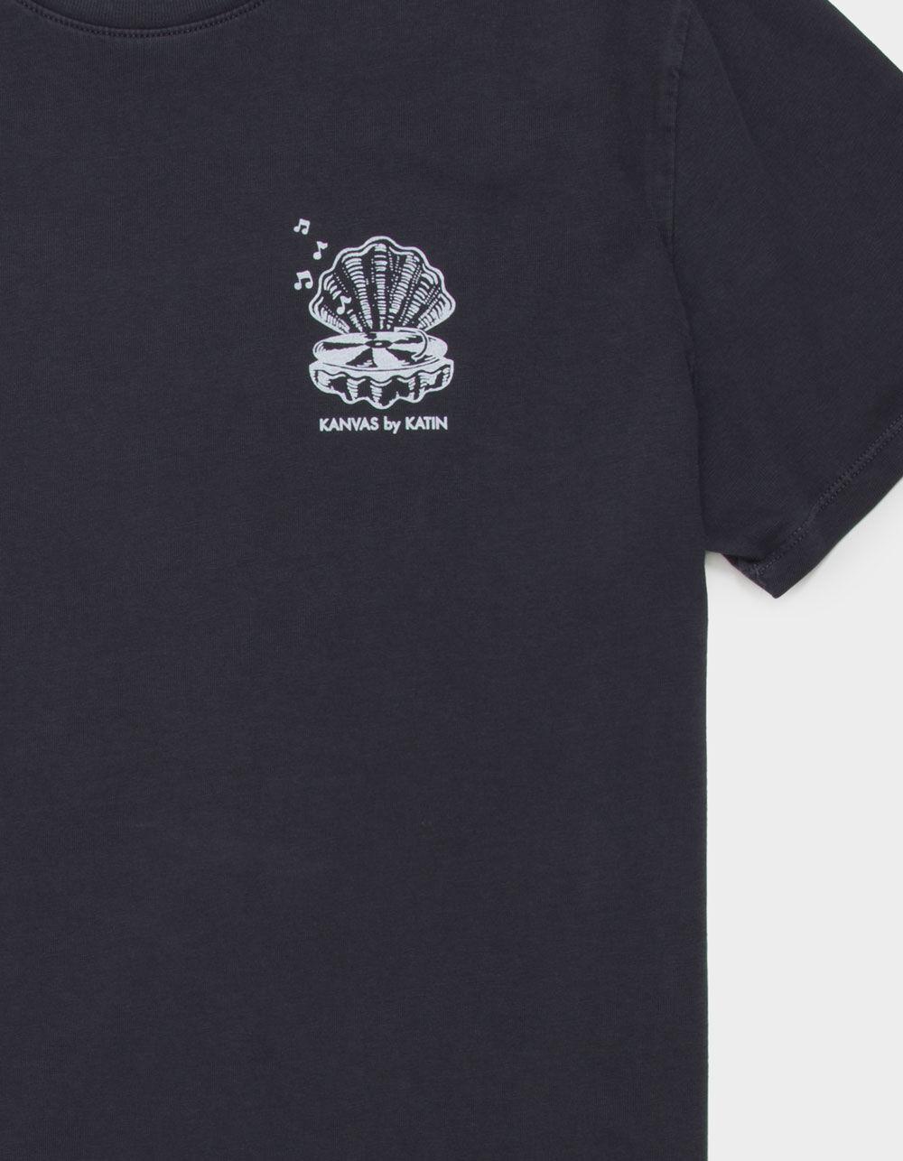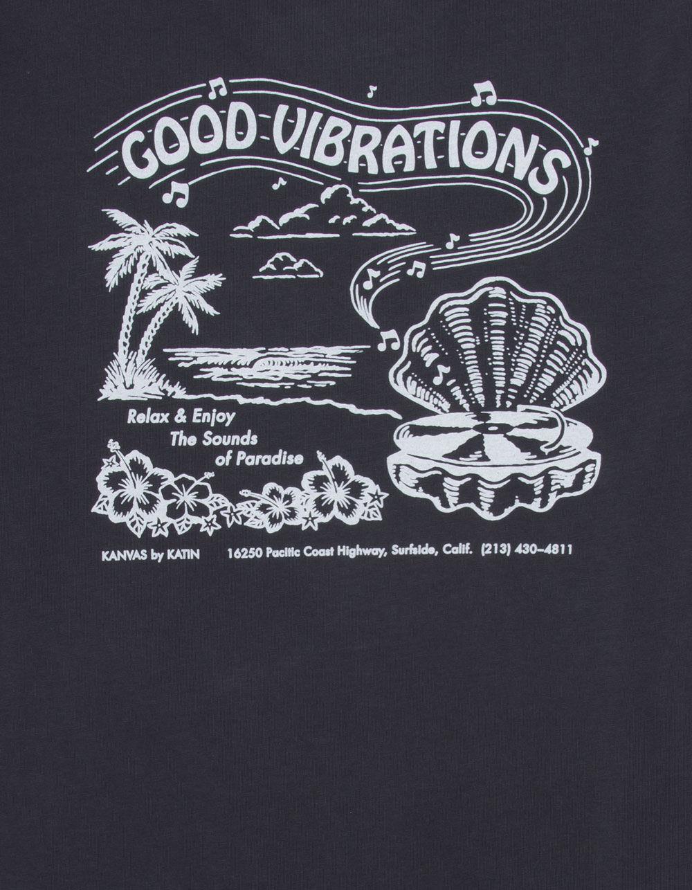 Katin Vibrations Tee. Graphic screened at left chest. Large graphic on back. Side seam flag label. Crew neck. Short sleeve. 100% Organic Cotton. Machine wash. Imported.