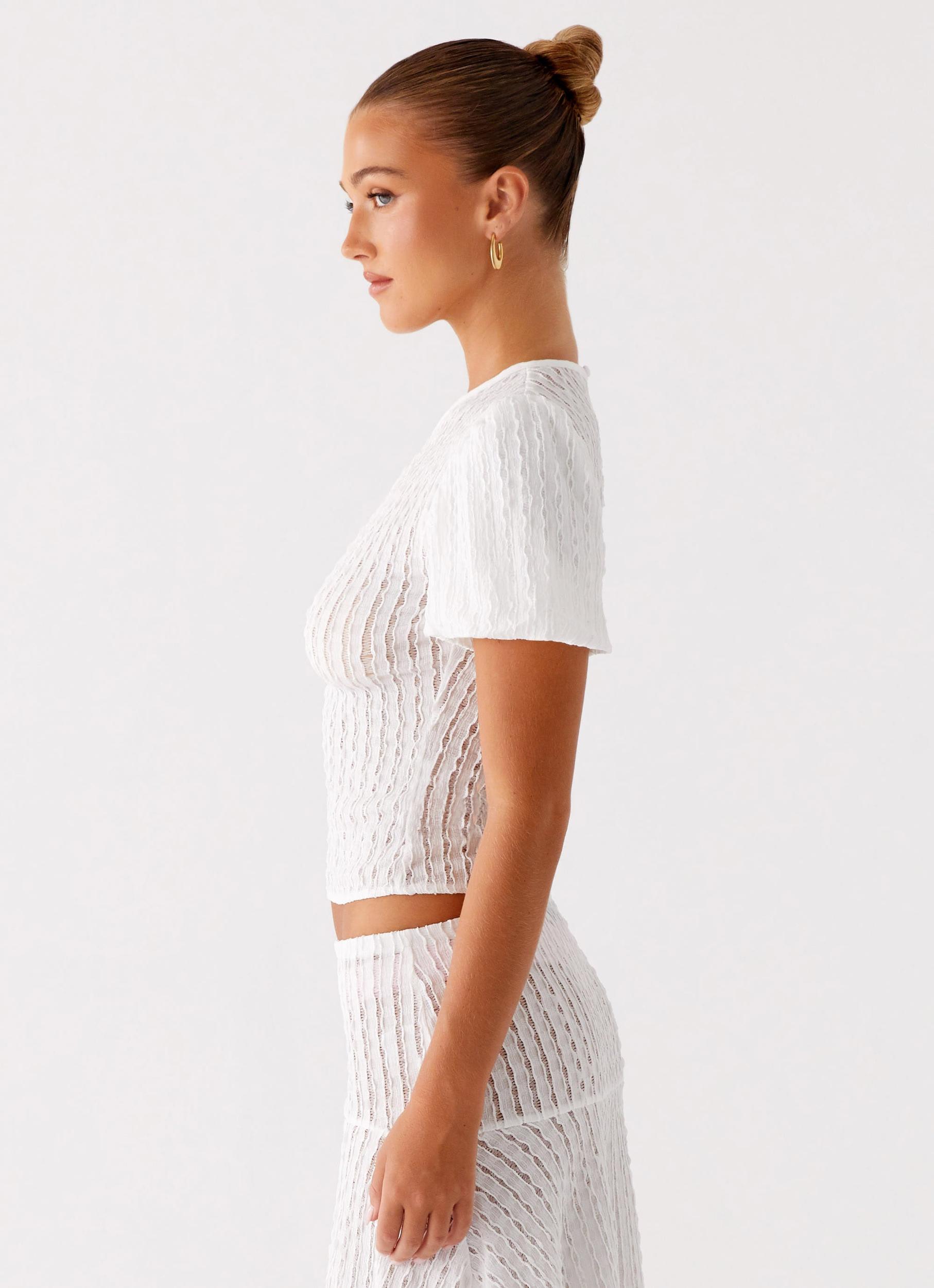 Peppermayo Exclusive The Katta Top adds a playful touch to your wardrobe with its puff sleeves and textured fabric. This mid-length top is perfect for pairing with anything from skirts to jeans, offering effortless style with a bit of volume. - Puff sleeves- Mid length top- Textured fabric- Back neck button closure- Unlined- Stretch material- Fabric: 95% polyester, 5% spandex Size AU 8 / US 4 garment measurements: Length: 50 cm / 19.69 inBust: 76 cm / 29.92 inWaist: 64 cm / 25.20 inHem: 70 cm / 27.56 inSleeve length: 22.5 cm / 8.86 in Yasmin is 174cm and wearing a size AU 6 / and US 2