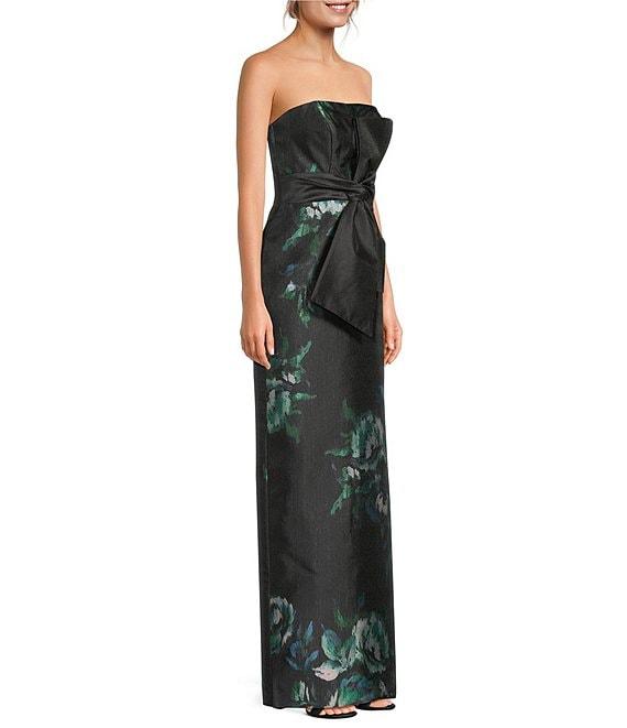 Kay Unger Constance Floral Mikado Strapless Column Gown