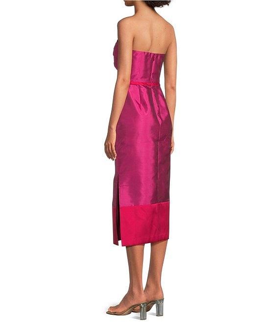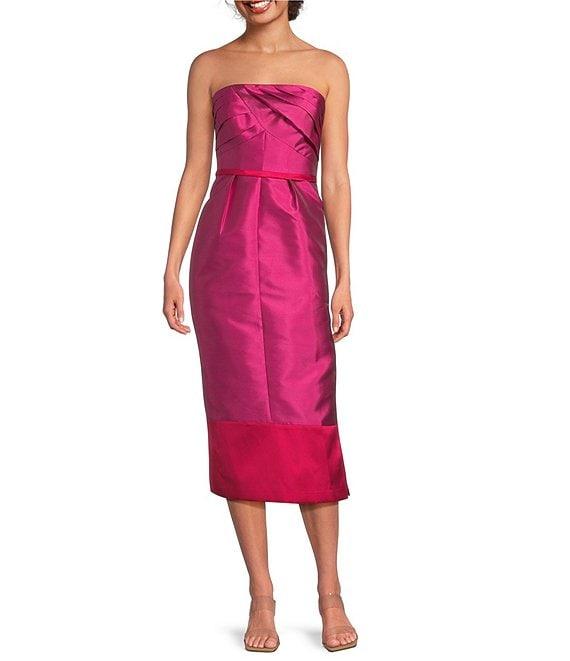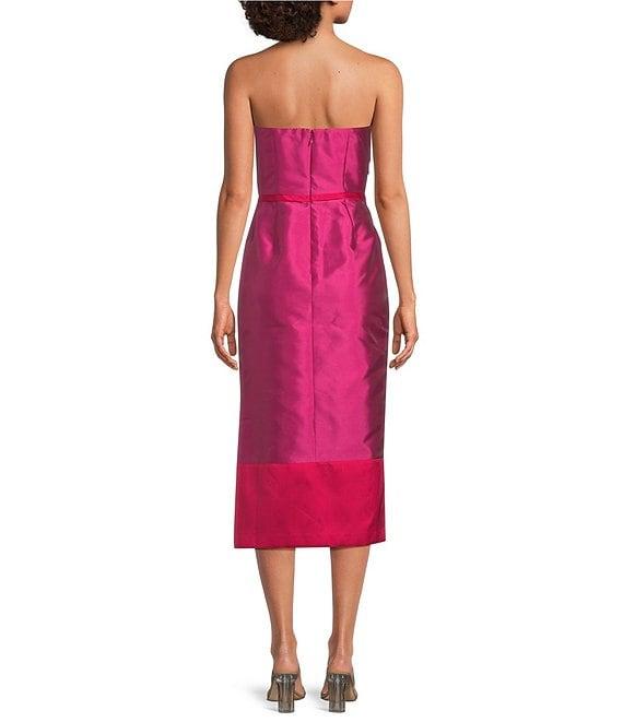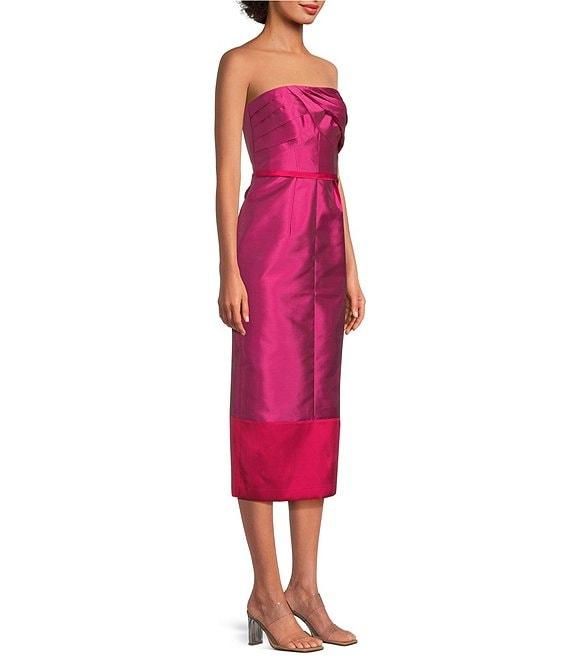 Kay Unger India Taffeta Color Block Strapless Neck Sleeveless Pleated Sheath Midi Dress