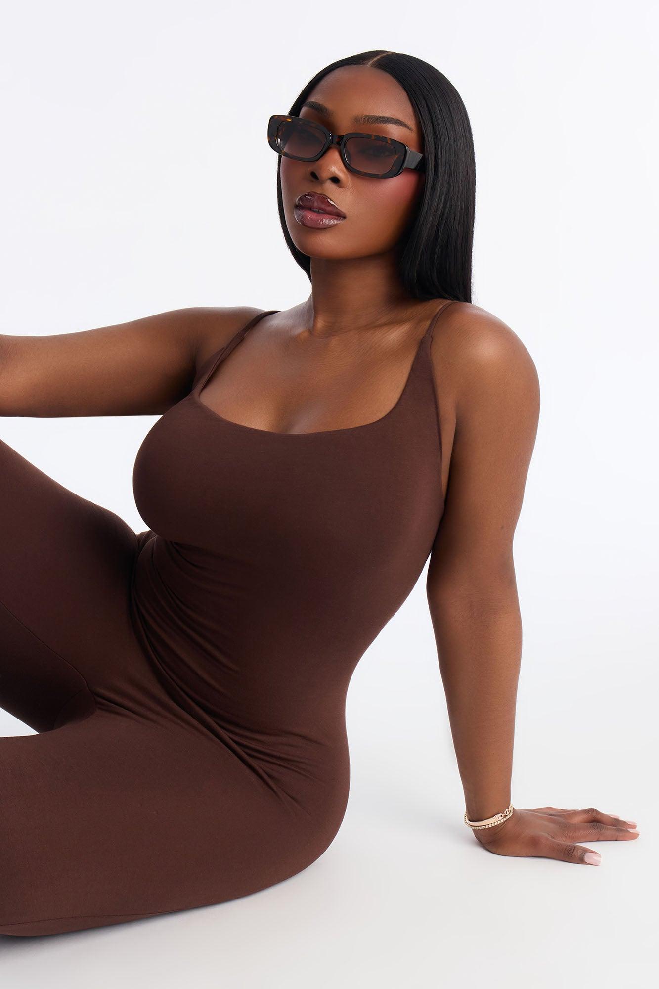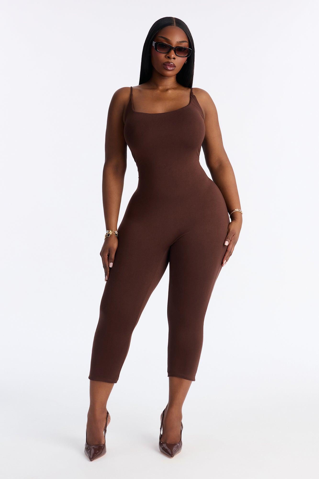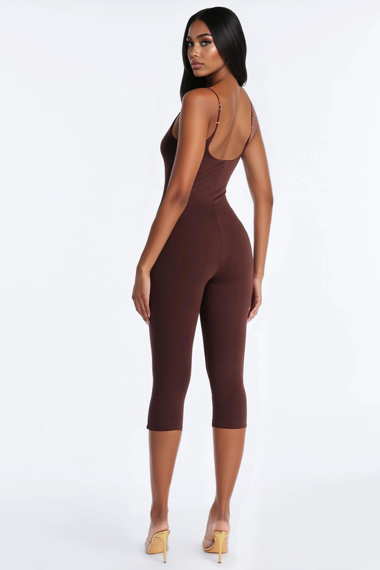 Kaya Double Lined Jersey Capri Catsuit - Chocolate Female