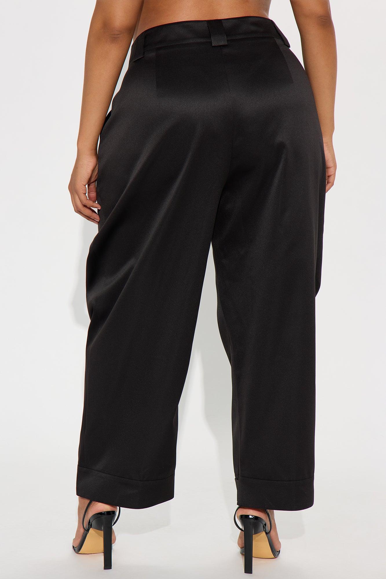 WOMEN'S BARREL LEG PANTS (BLACK) - BLACK / 29/30