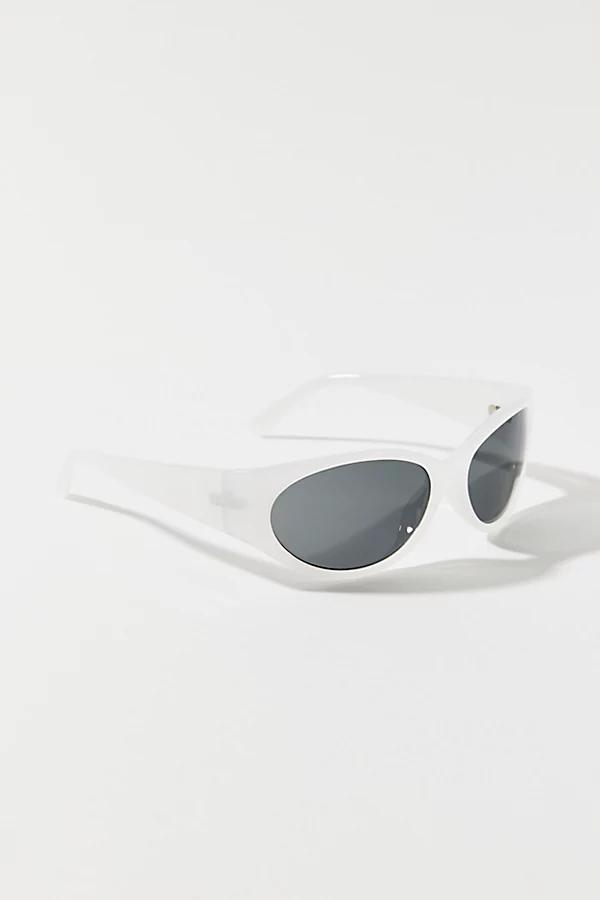 Retro cool shield sunglasses. Lightweight plastic sunglasses frames in a bold shield silhouette complete with rounded lenses. 100% UV protection. Features Kayla plastic round shield sunglasses Retro plastic shield sunglasses Lightweight plastic frames Rounded lenses 100% UV protection Content + Care Plastic Wipe clean Imported Kayla Plastic Round Shield Sunglasses in White, Womens at Urban Outfitters