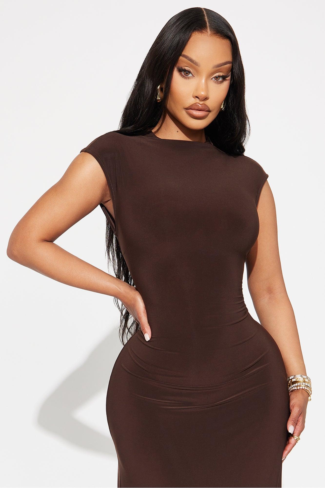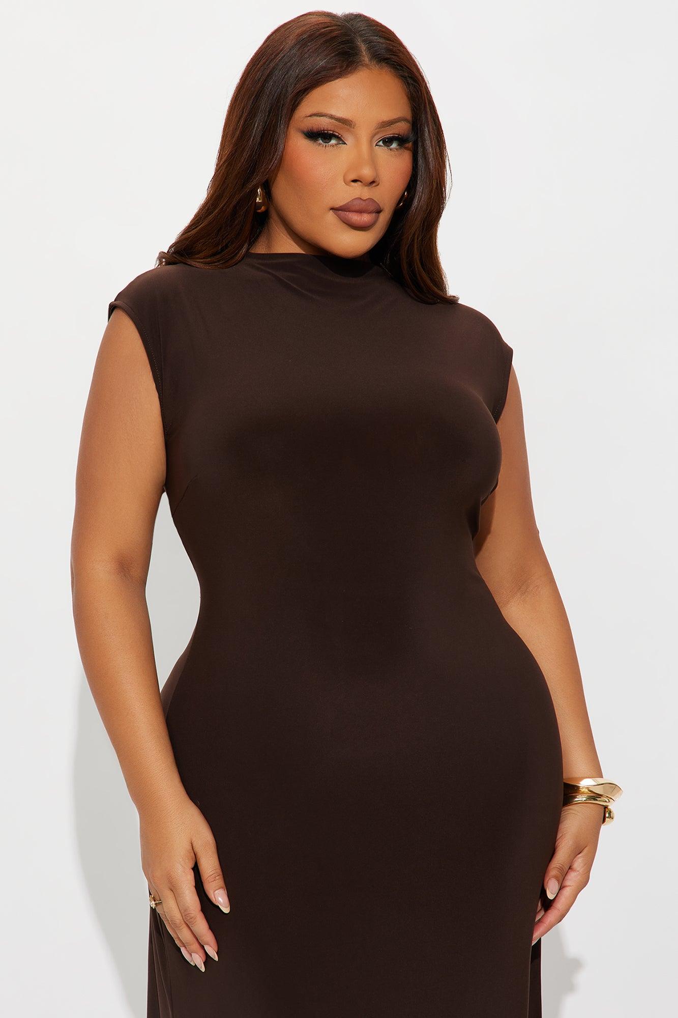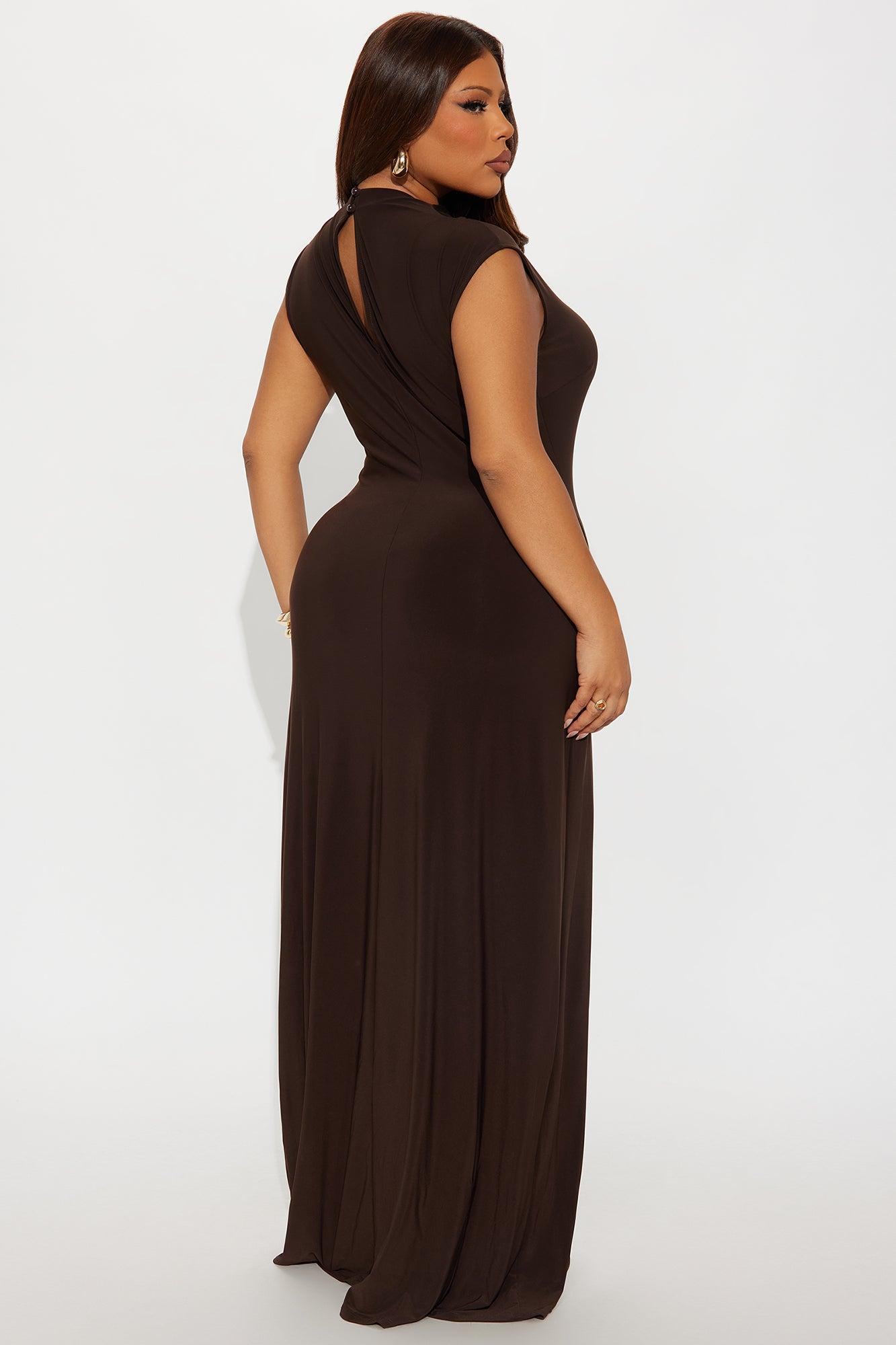 Kaylah Mock Neck Cap Sleeve Maxi Dress - Chocolate