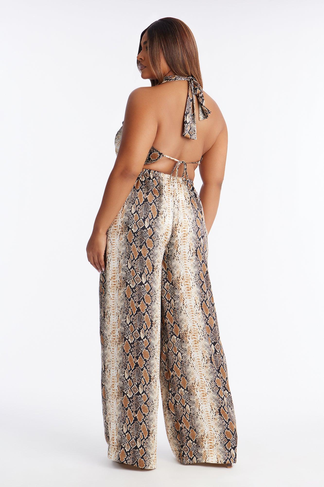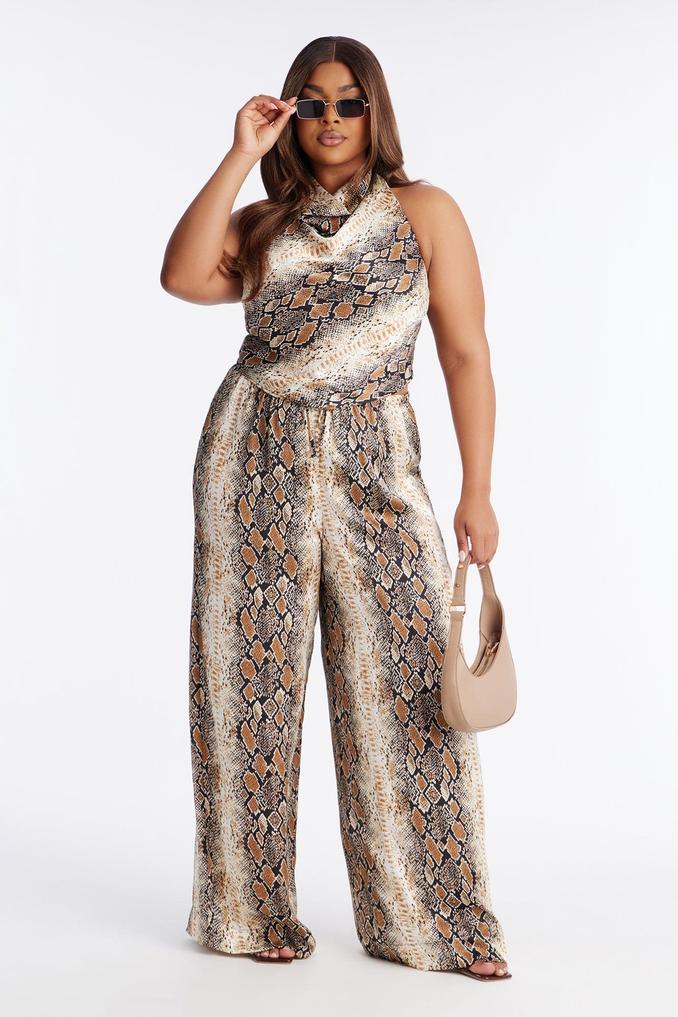 Kaylee Satin Snake Print Pant Set - Black/combo Female