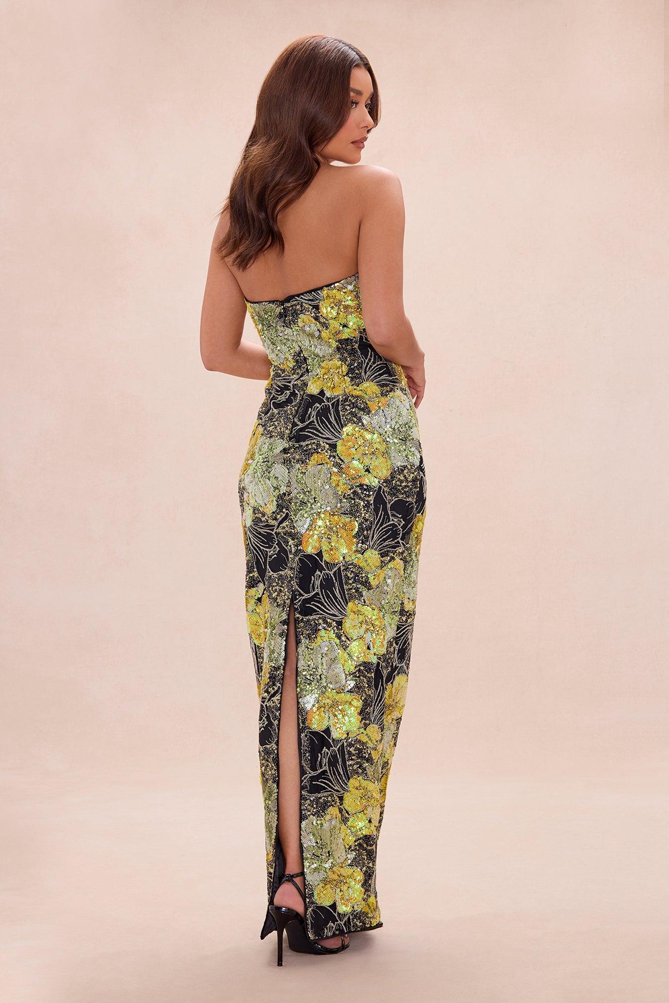 Kaylee Sequin Embroidered Maxi Dress - Yellow/combo Female