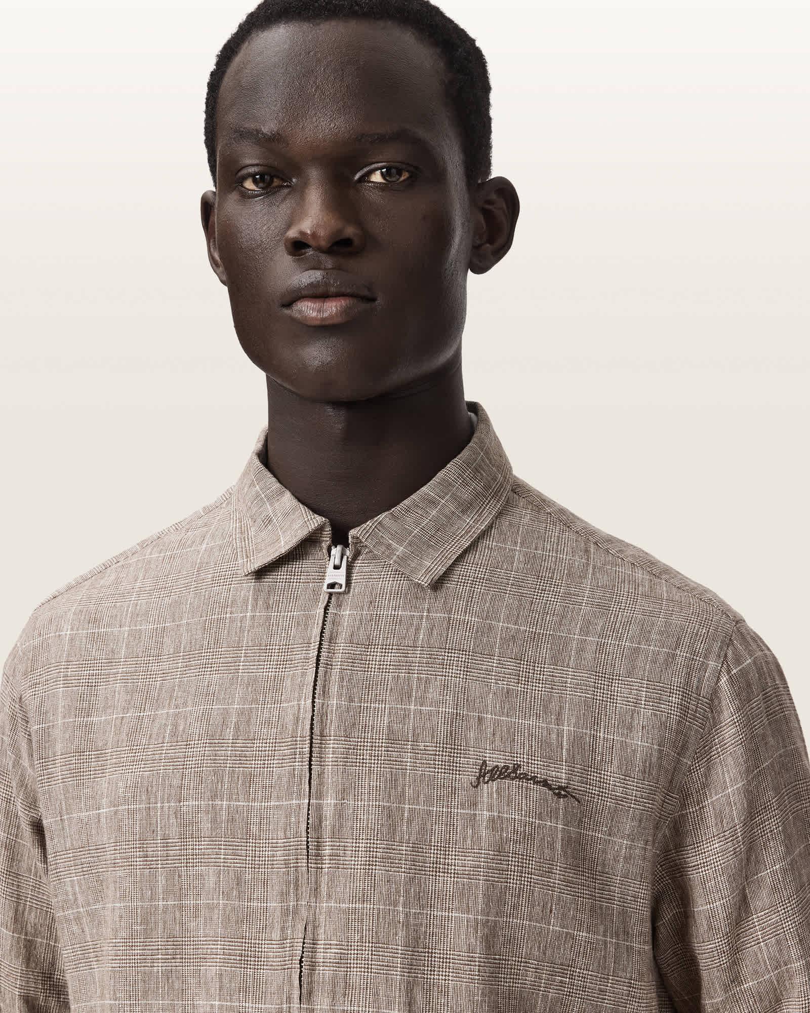 Shop the Keal Linen Blend Embroidered Check Jacket in SEDIMENT BROWN at ALLSAINTS US from our collection of Jackets & Coats. Free shipping on all US orders.