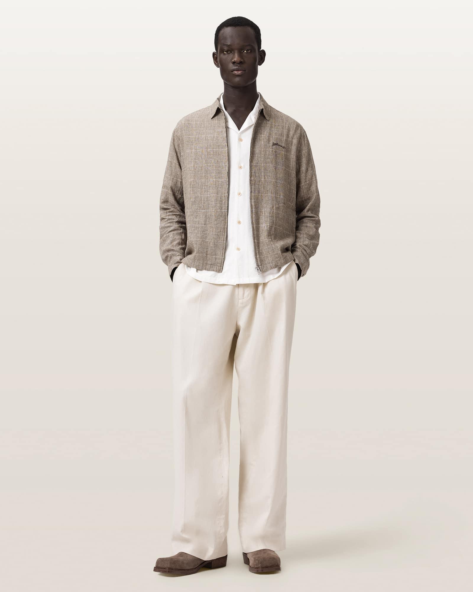 Keal Linen Blend Embroidered Check Jacket SEDIMENT BROWN | ALLSAINTS US