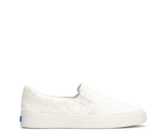 Keds Pursuit Womens Slip-On Sneaker White Effortlessly style your look with the Keds Pursuit Slip-On Sneaker. Made with a fabric upper , this Slip-On has a comfy Padded collar for extra comfort. The Softerra footbed, made of 10% recycled synthetic foam, gives excellent cushioning, while the Rubber outsole is durable. Fabric upper Slip-On Padded collar Softerra footbed Rubber outsole