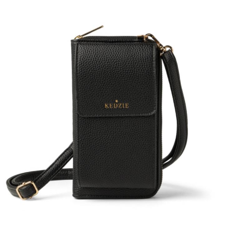 Take your essentials on the go with the Kedzie Eclipse Smartphone Crossbody. This compact bag features a smartphone pocket with a snap closure, a zip-around main compartment, and 6 built-in card slots for convenience. It has interior zippered valuables pocket and a removable, adjustable strap. The strap measures 55" fully extended. This stylish crossbody can also be worn as a wristlet. Bag dimensions: 4.25" W x 7.5" H x 2.2" D