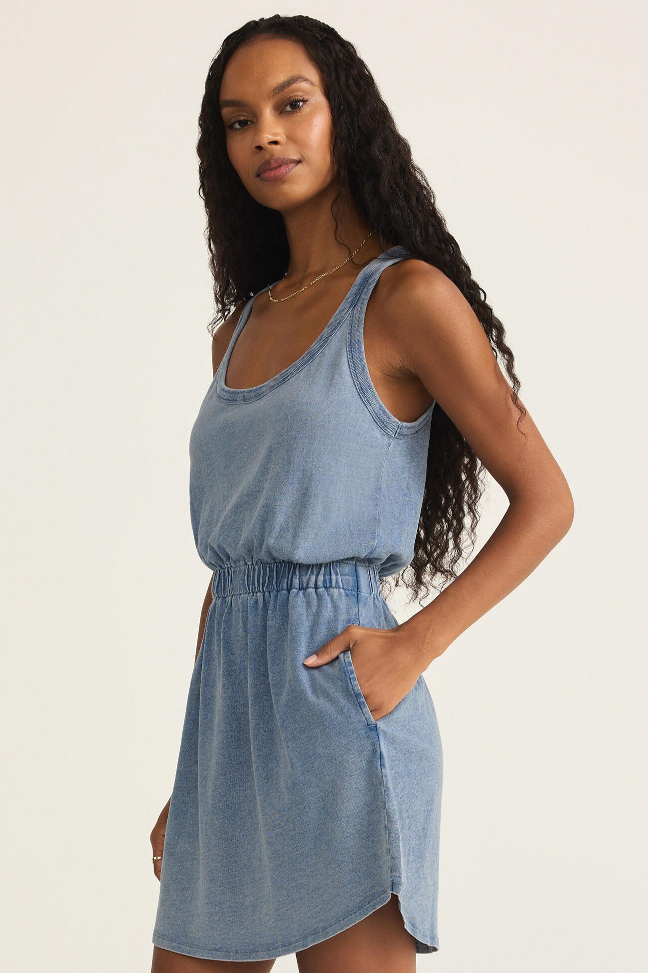 Effortlessly cool and endlessly wearable, this sleeveless mini dress is made from soft 100% cotton jersey with a relaxed fit and a cinched elastic waistband for the perfect shape. Designed with a curved hemline and on-seam pockets, it’s the ultimate throw-on-and-go piece for sun-soaked days.
