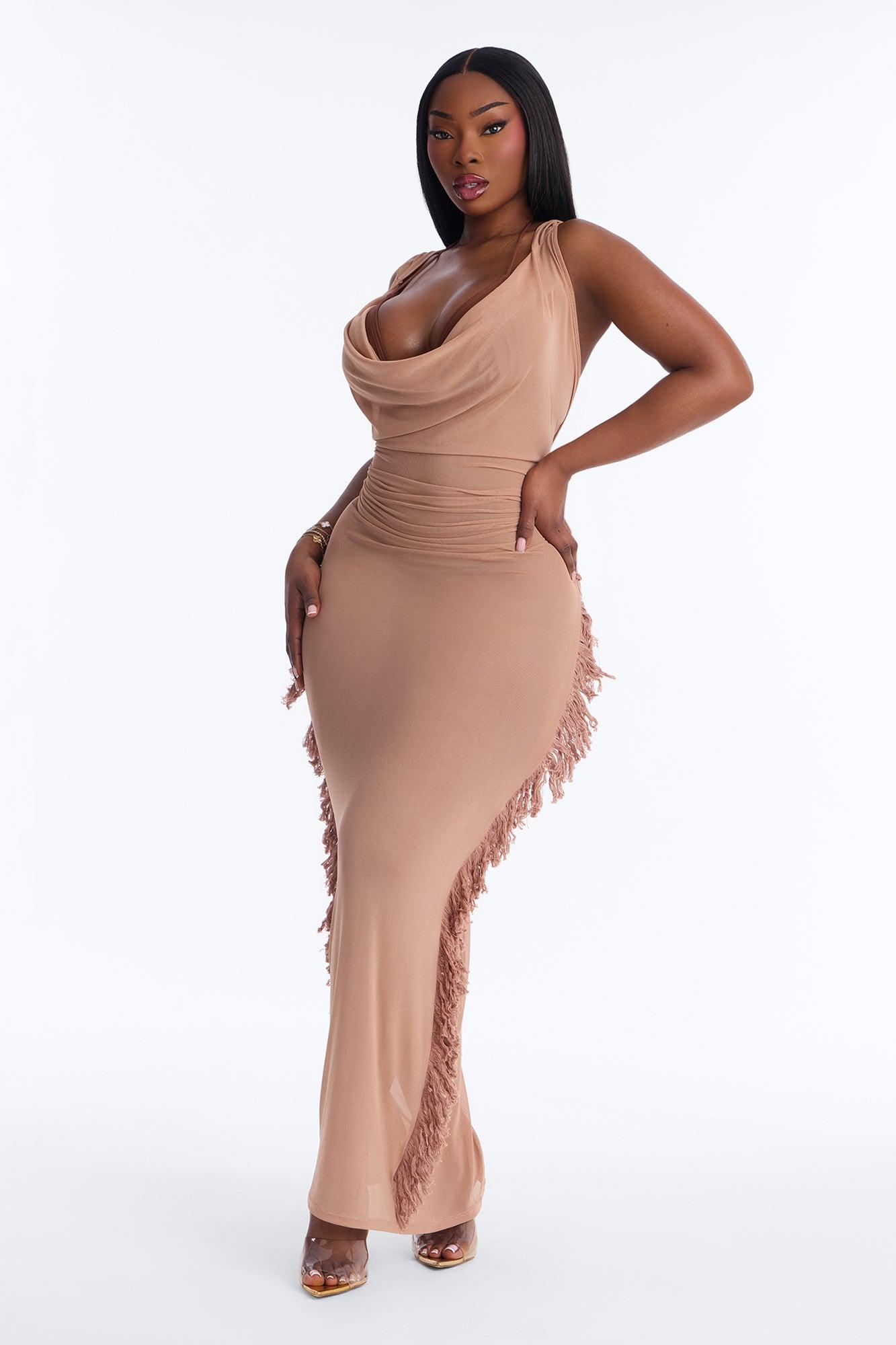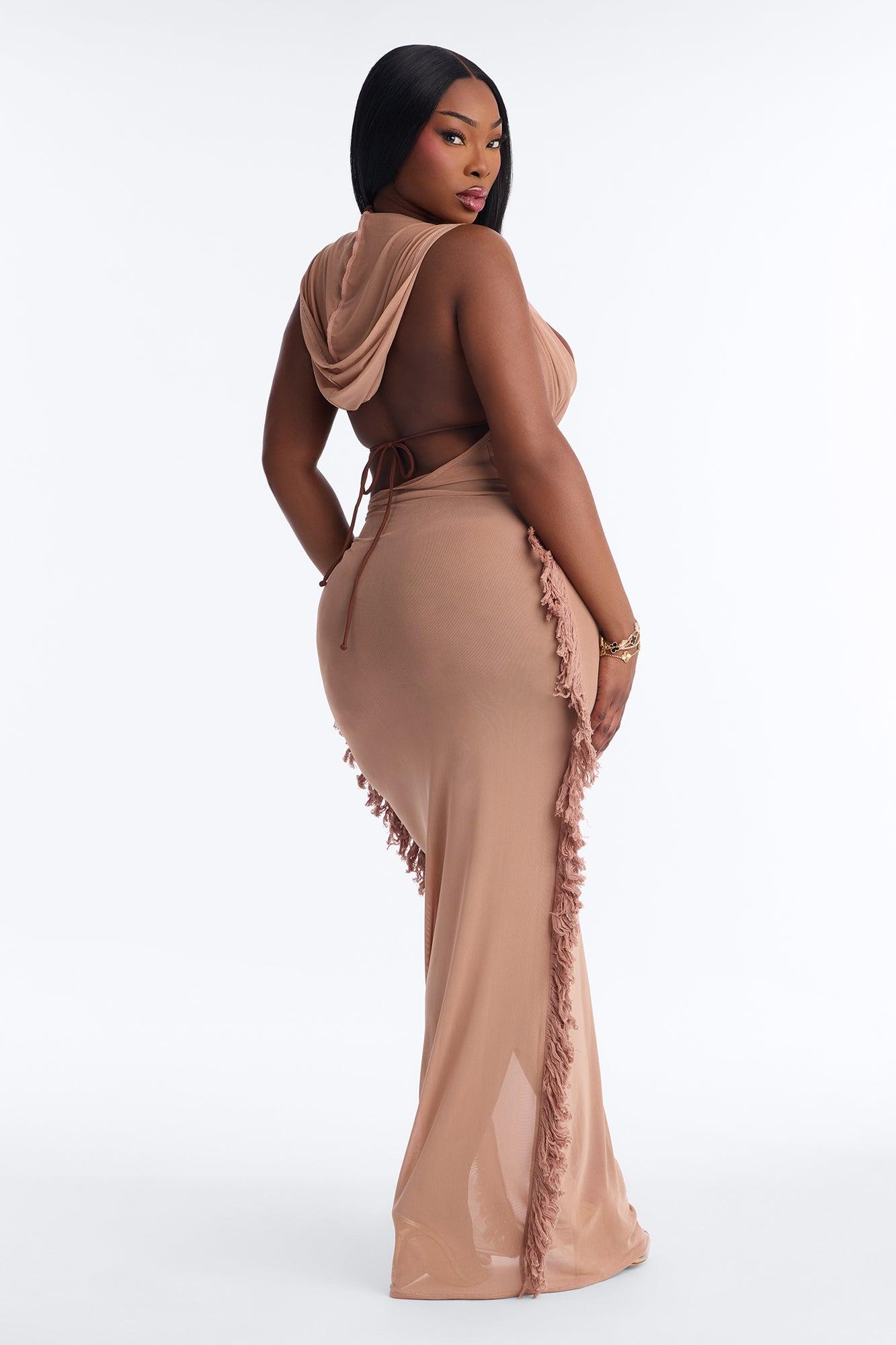Keep Cool Fringe Hooded Mesh Cover Up Maxi Dress - Mocha Female