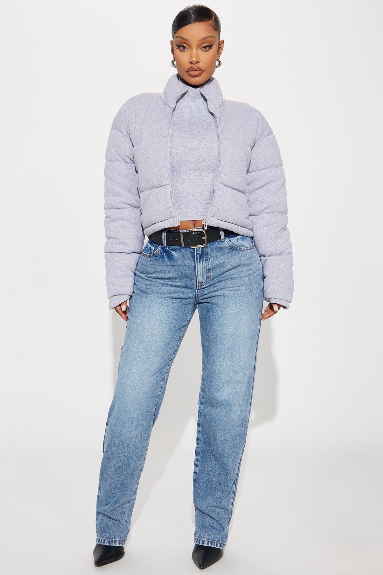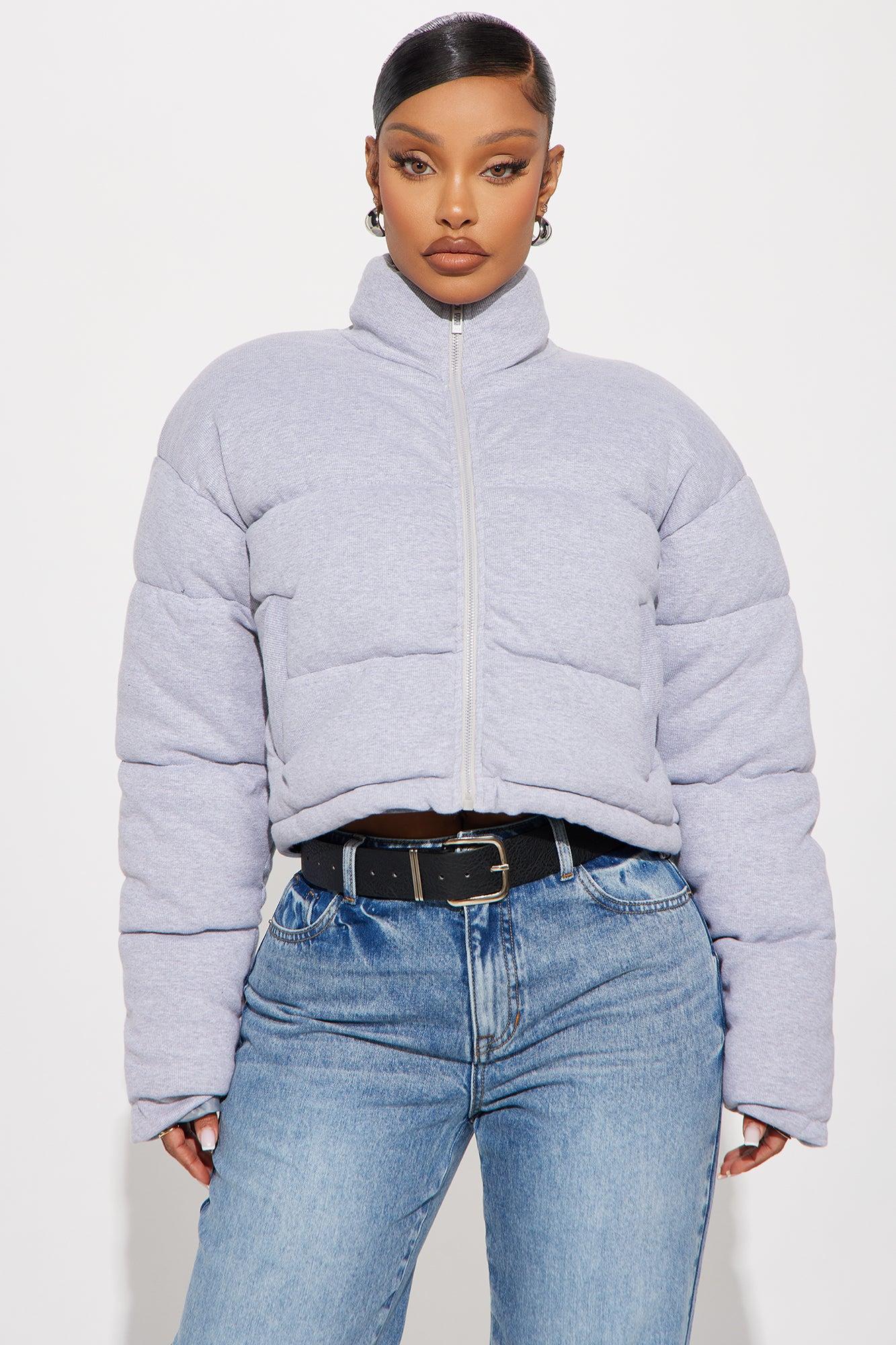 Keep It Cozy Ribbed Puffer Jacket - Grey