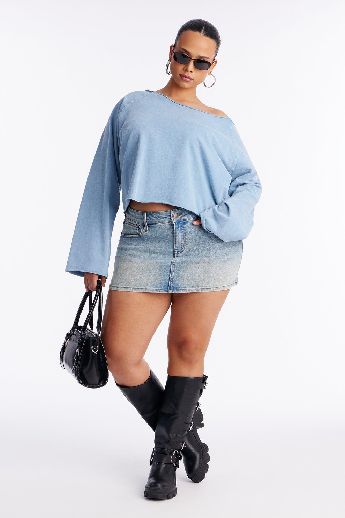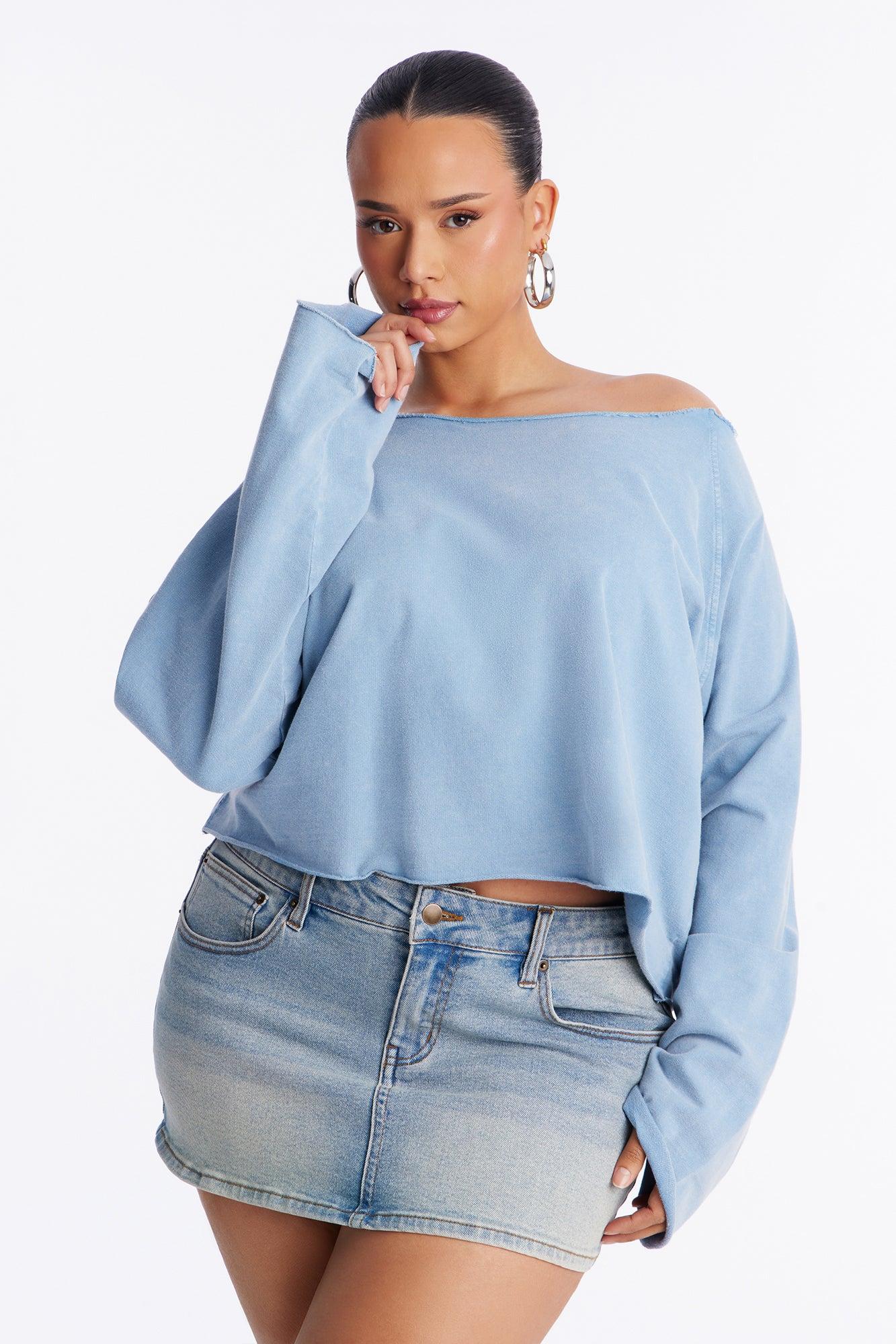 Keep It Cute Off Shoulder Sweatshirt - Blue Female
