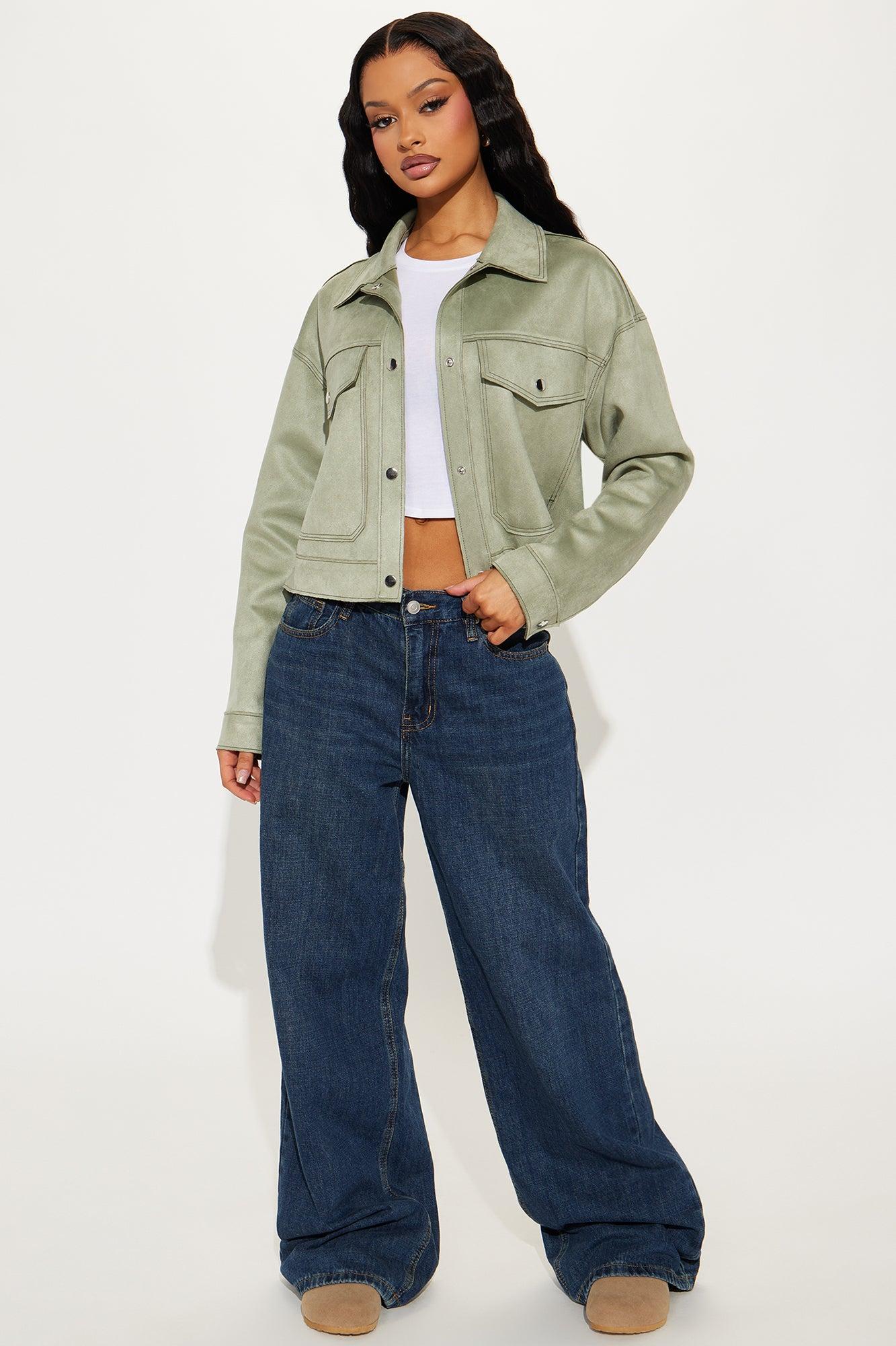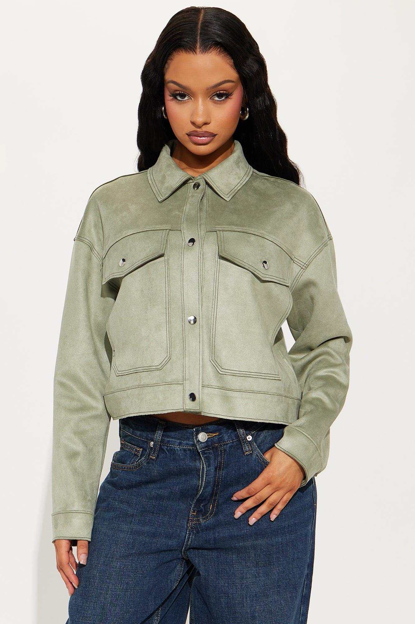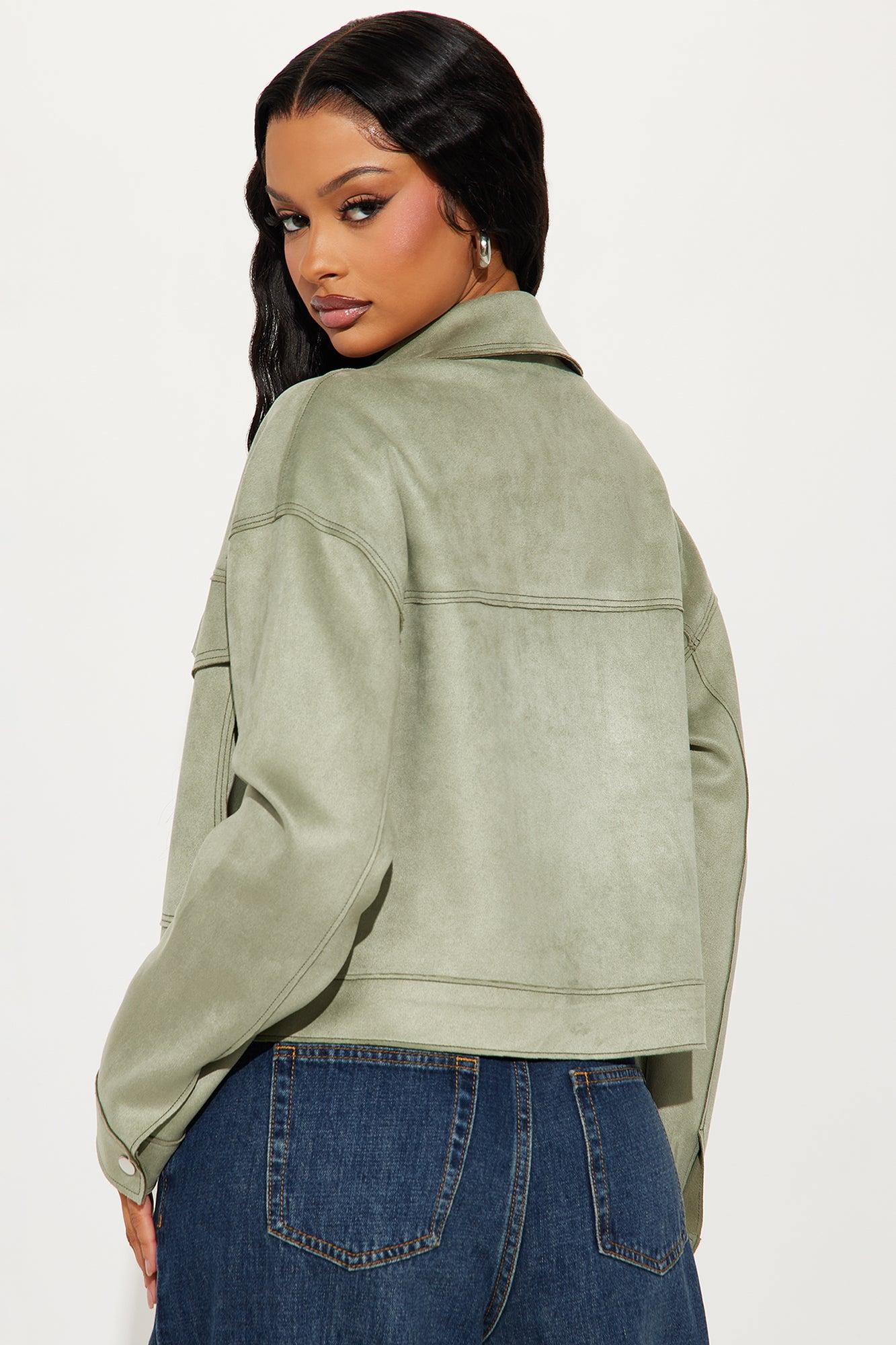 Keep It Hush Faux Suede Jacket - Sage