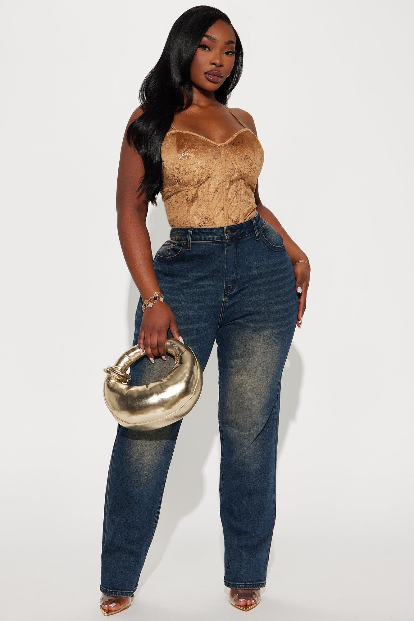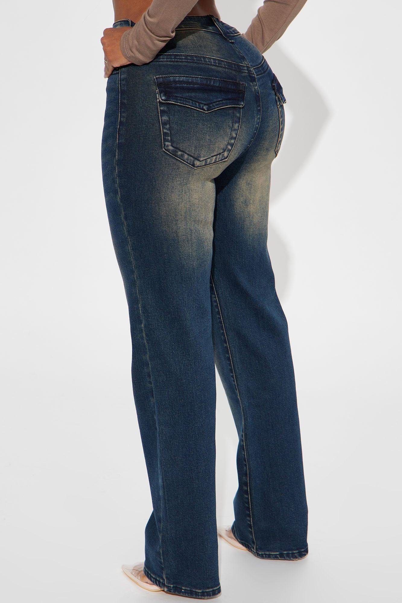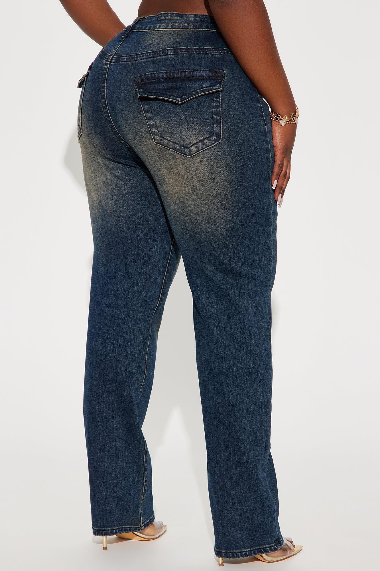 Available In Dark Wash. Straight Leg Jean Flap Pockets 5 Pocket Tinted 10.5" High Rise 32" Inseam High Stretch Disclaimer: Due To The Specialized Wash, Each Garment Is Unique. 92% Cotton 6% Polyester 2% Spandex Imported