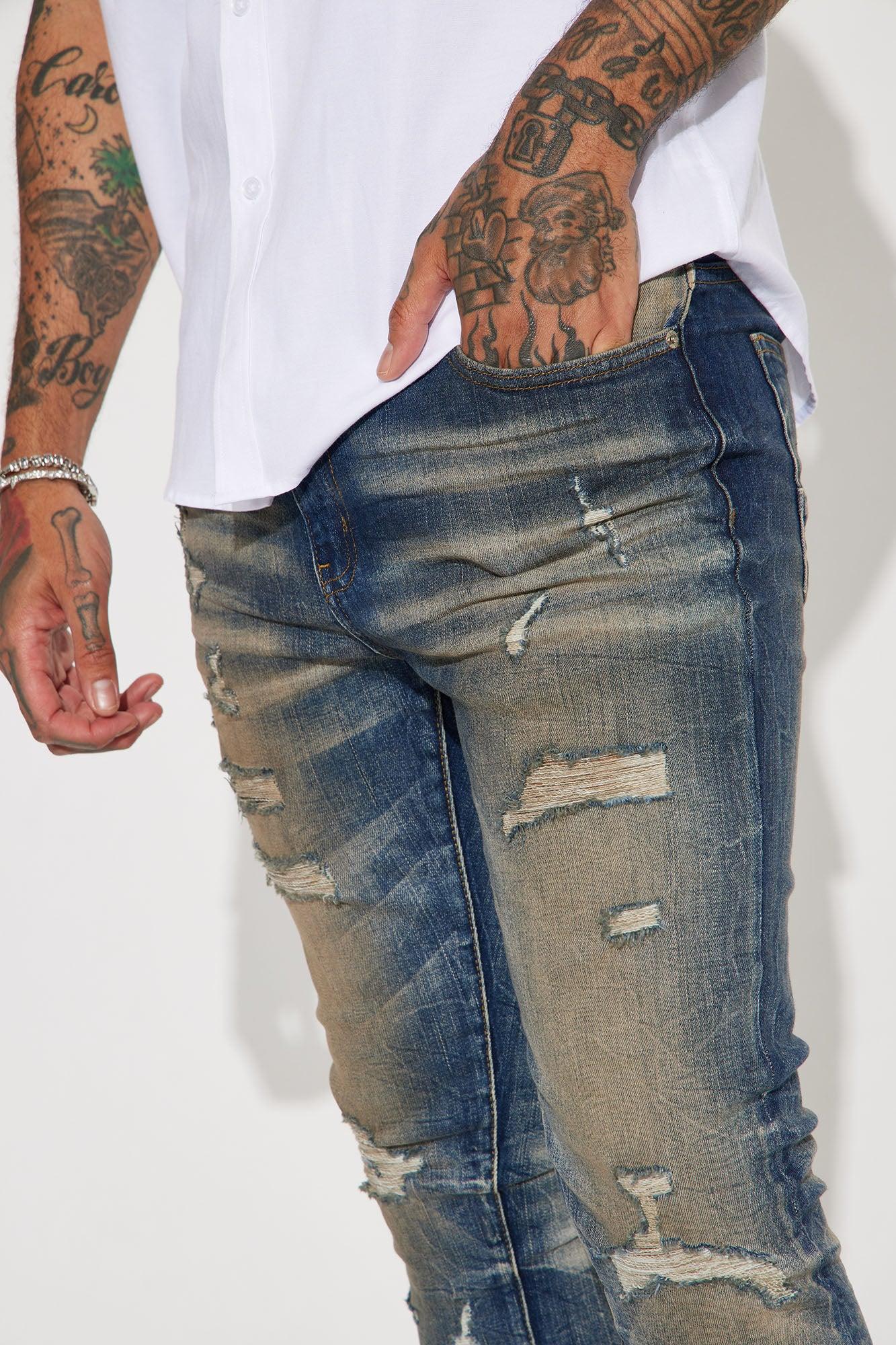 Big & Tall: Height 6'3 - Waist Size 42 Available In Vintage Blue Wash. Stretch Denim Stacked Skinny Fit Zip Fly Button Closure 5 Pocket Body Disclaimer: Due To The Distressing Process, & Wash Process, Each Garment Is Unique. 88% Cotton 8% Polyester 4% Spandex Imported
