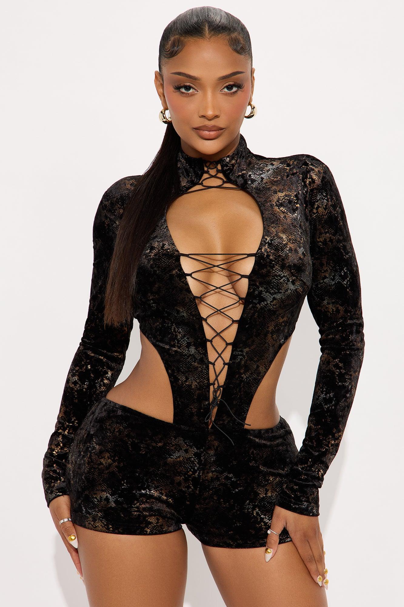 Keep Me Close Velvet Long Sleeve Romper - Black/combo Female