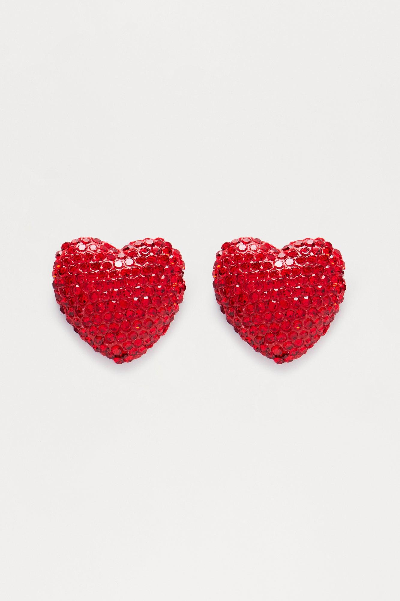 Keep My Love Rhinestone Heart Stud Earrings - Red Female
