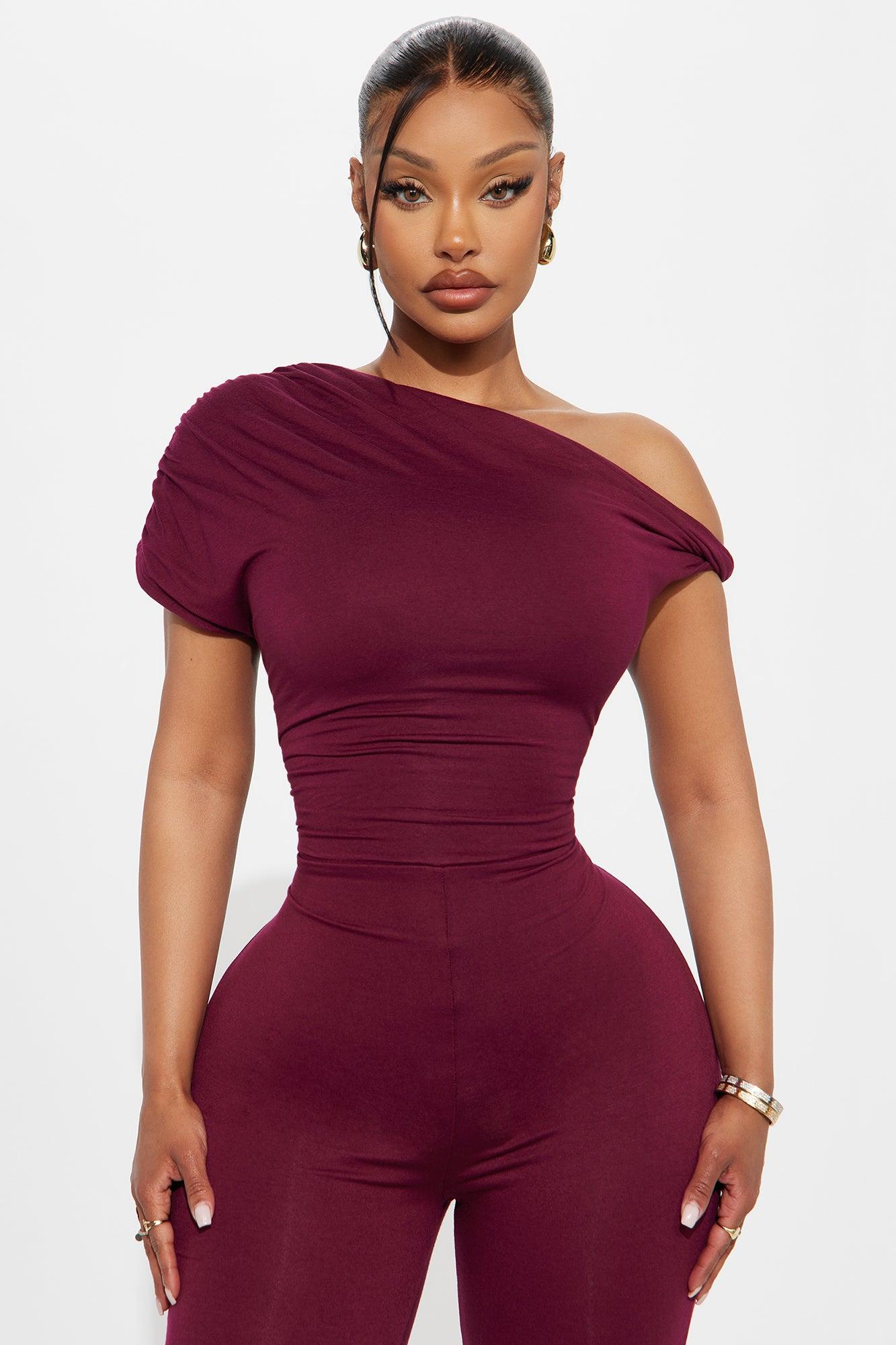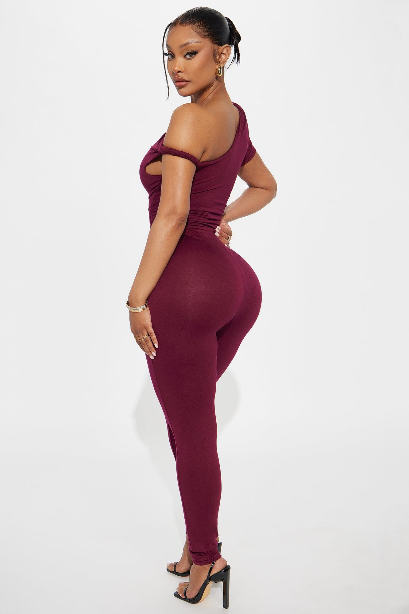 Keep Up Off Shoulder Skinny Jumpsuit - Burgundy Female