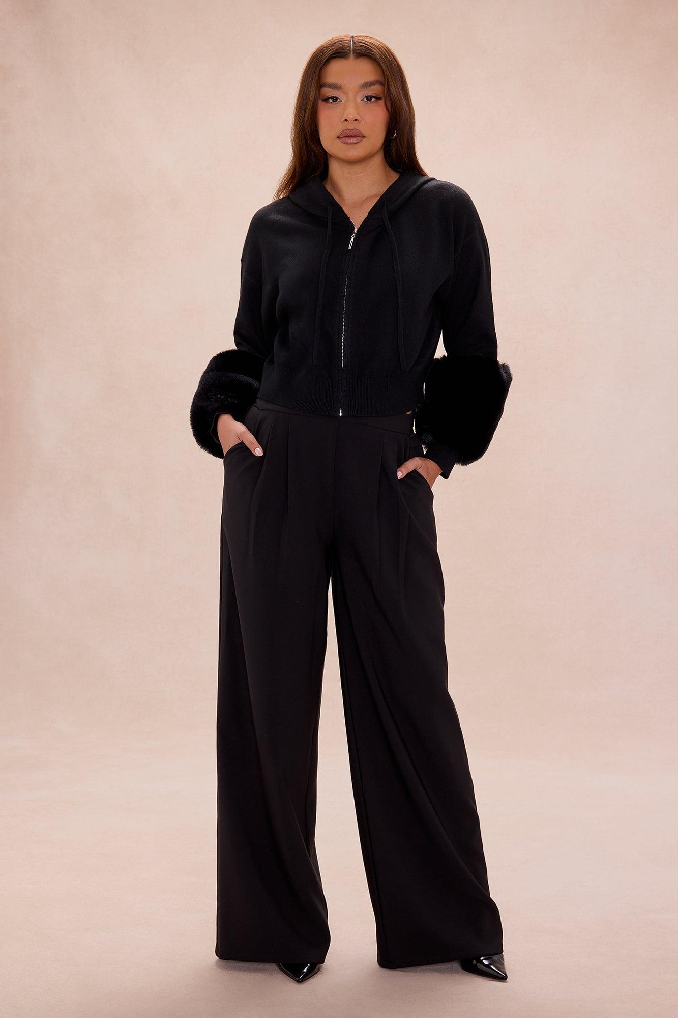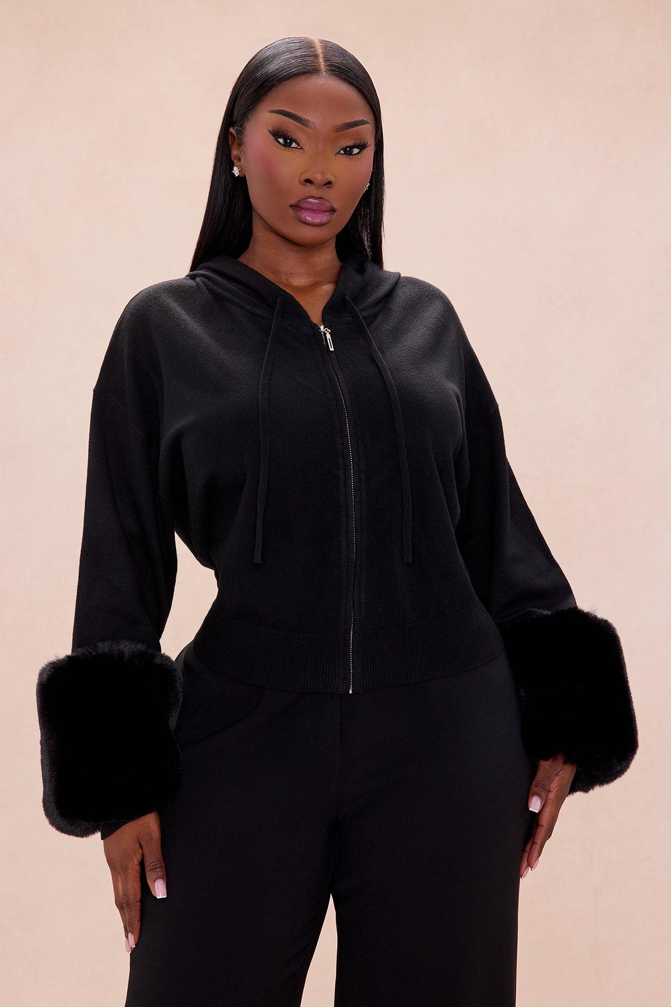 Keep Warm Fur Cuff Hoodie - Black Female